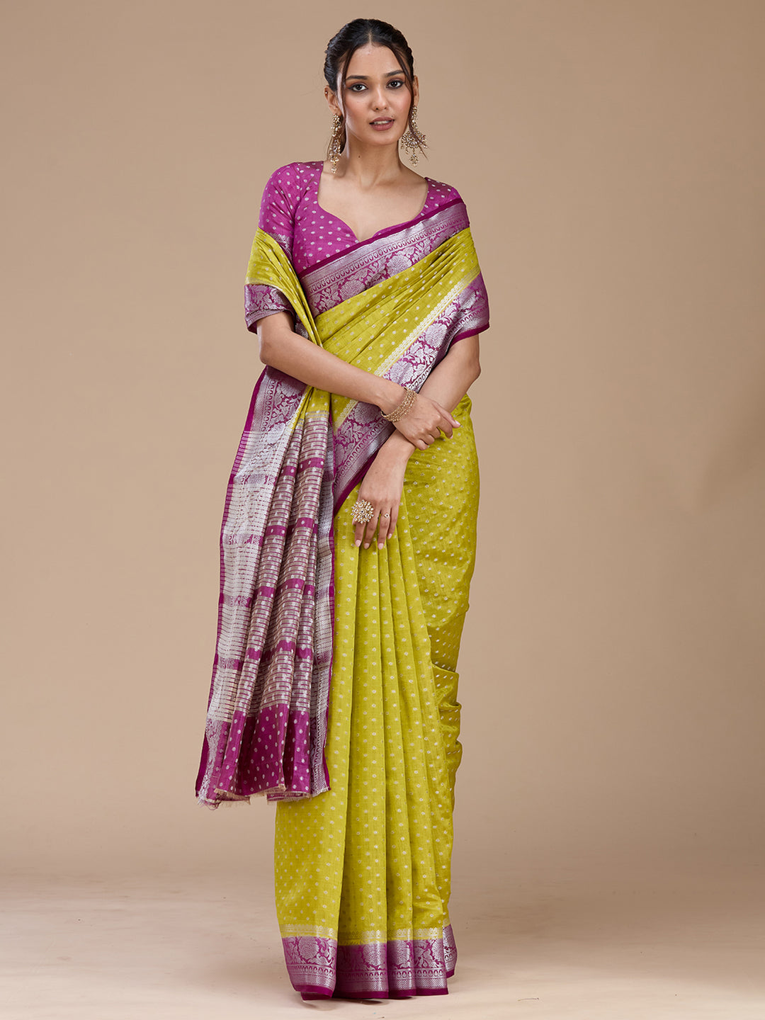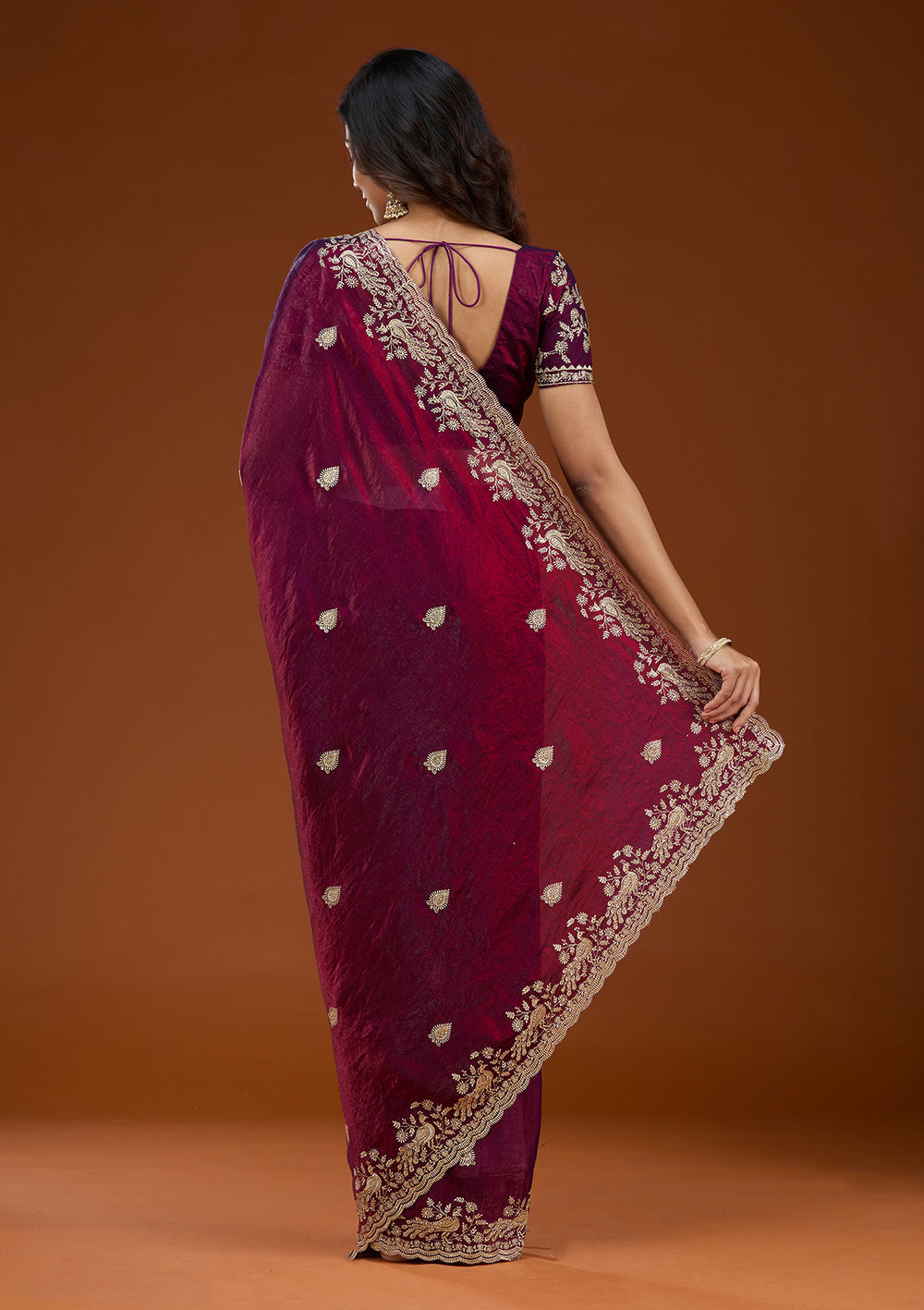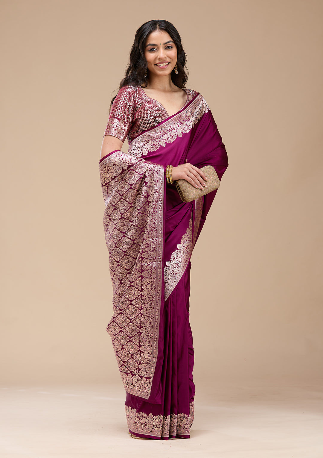 | Wine Zariwork (Gold) Banarasi Silk Saree | ₹ 7,192 | |