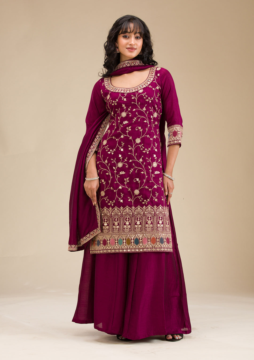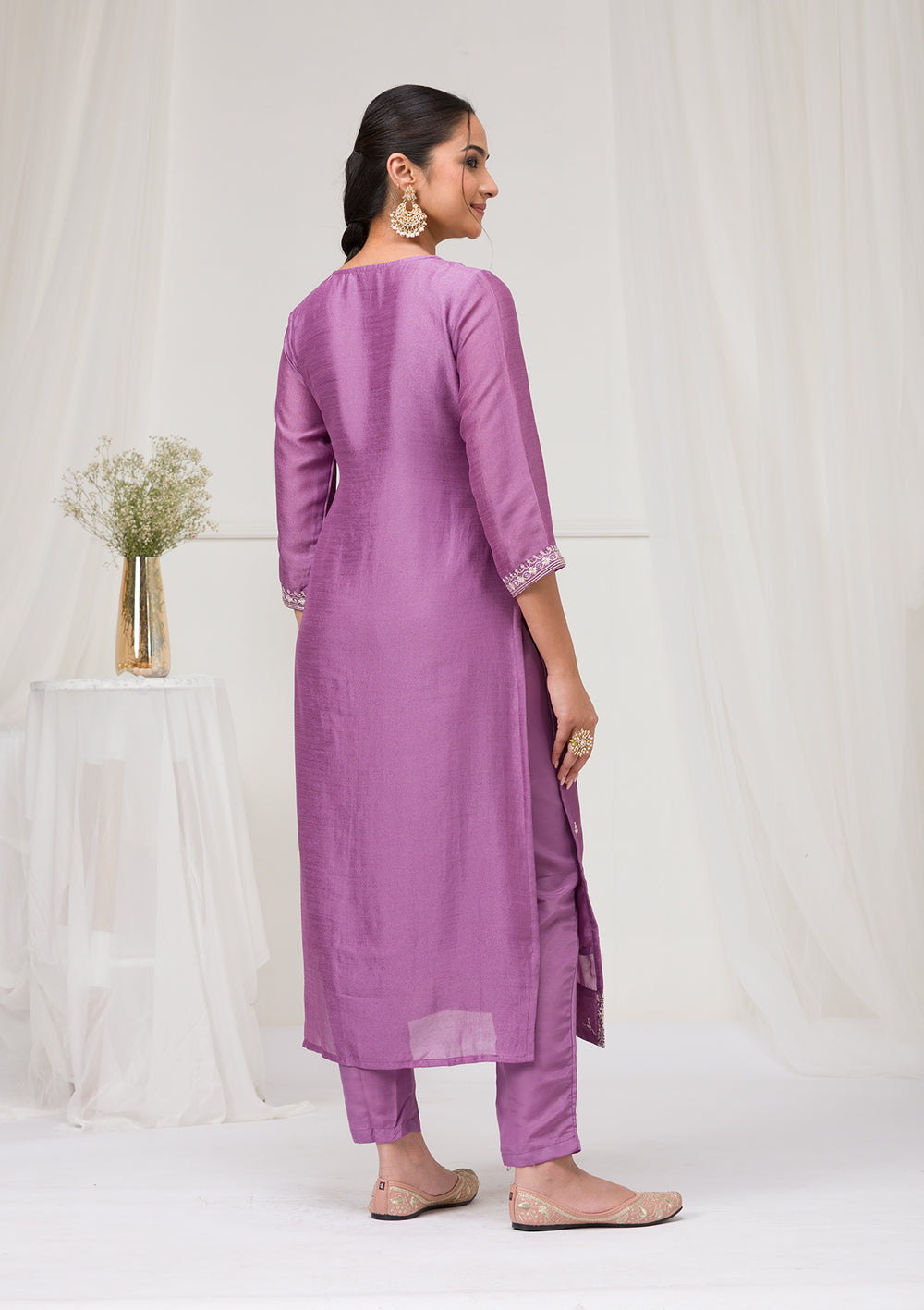 | Lavender Sequins Raw Silk Readymade Salwar Suit | ₹ 2,863 | |
