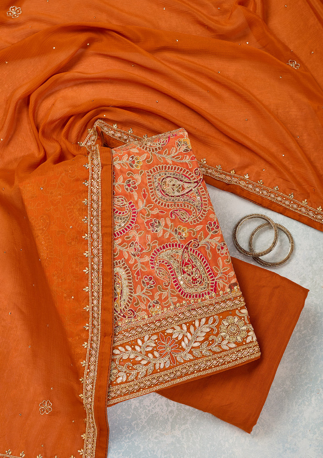 | Light Peach Stonework Tissue Unstitched Salwar Suit | ₹ 5,094 | |