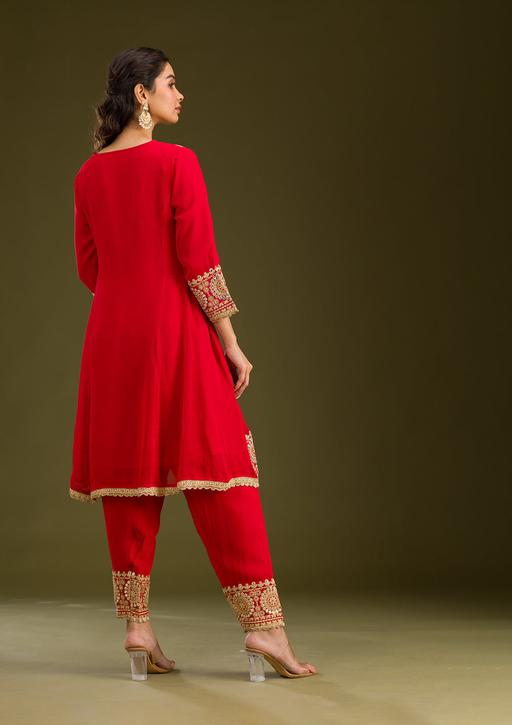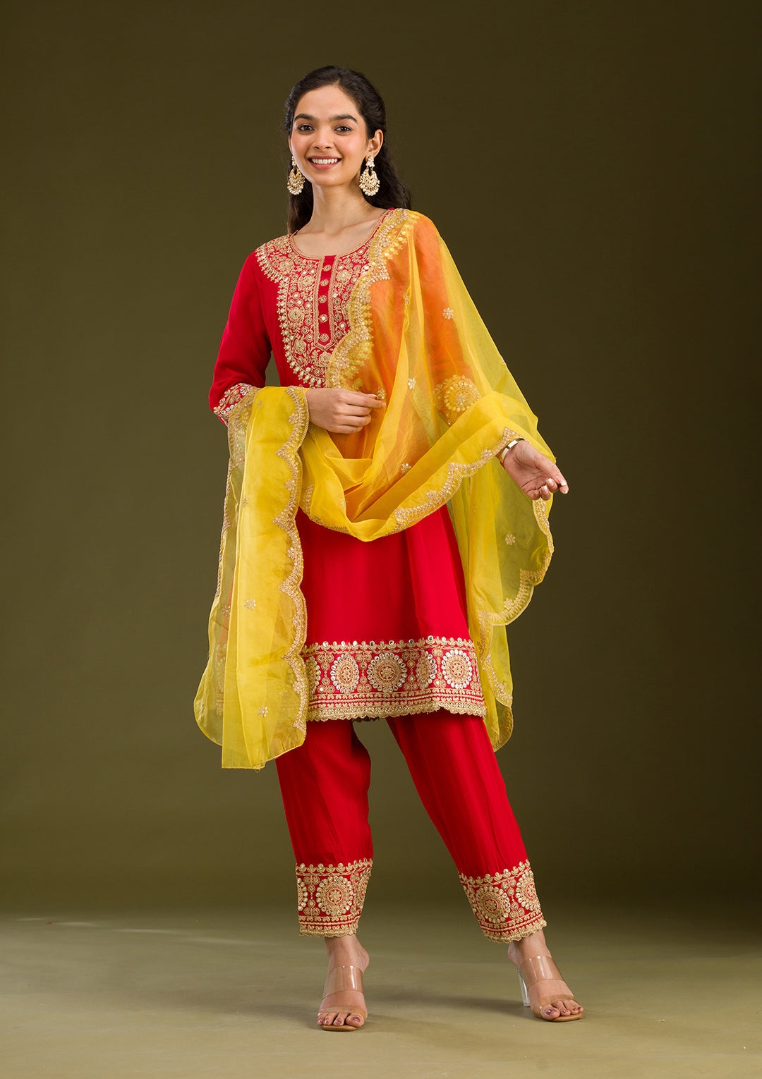 | Red Zariwork Semi Crepe Readymade Salwar Suit | ₹ 2,394 | |