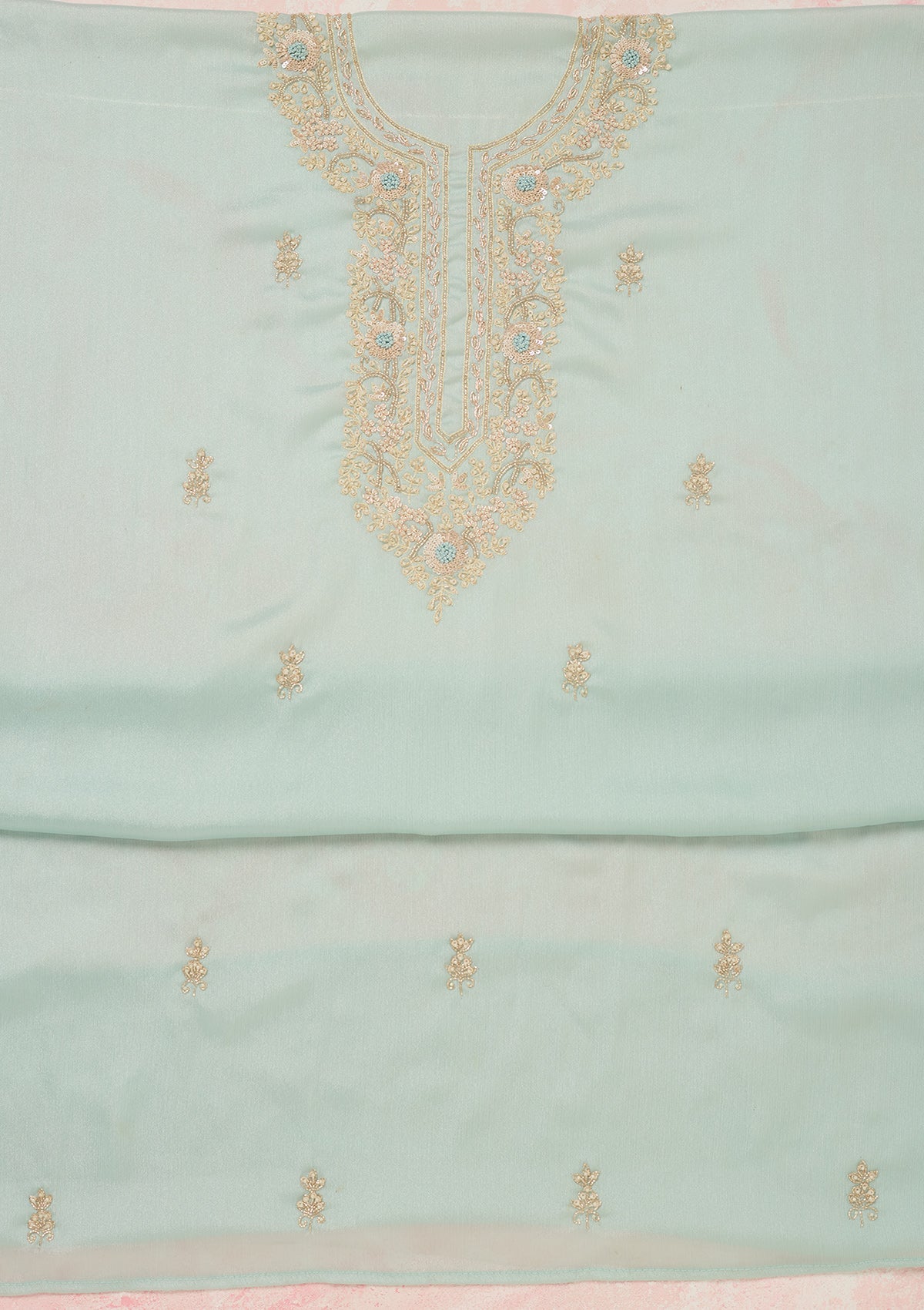 Sky Blue Cutdana Chinon Unstitched Salwar Suit