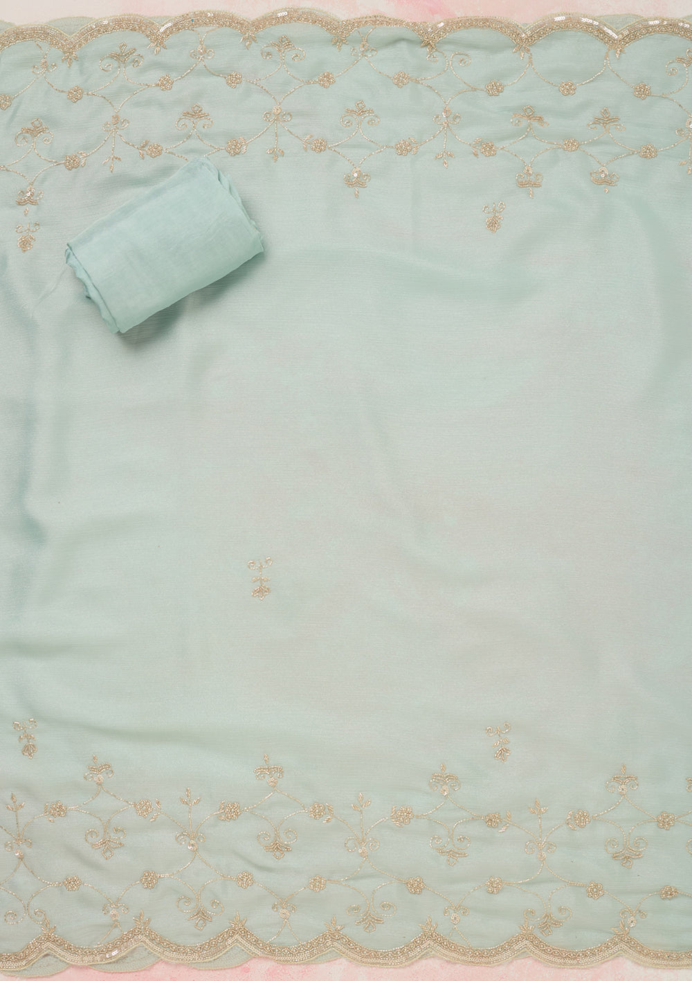 Rama Green Zariwork (Gold) Semi Crepe Unstitched Salwar Suit | ₹ 7,992 | |