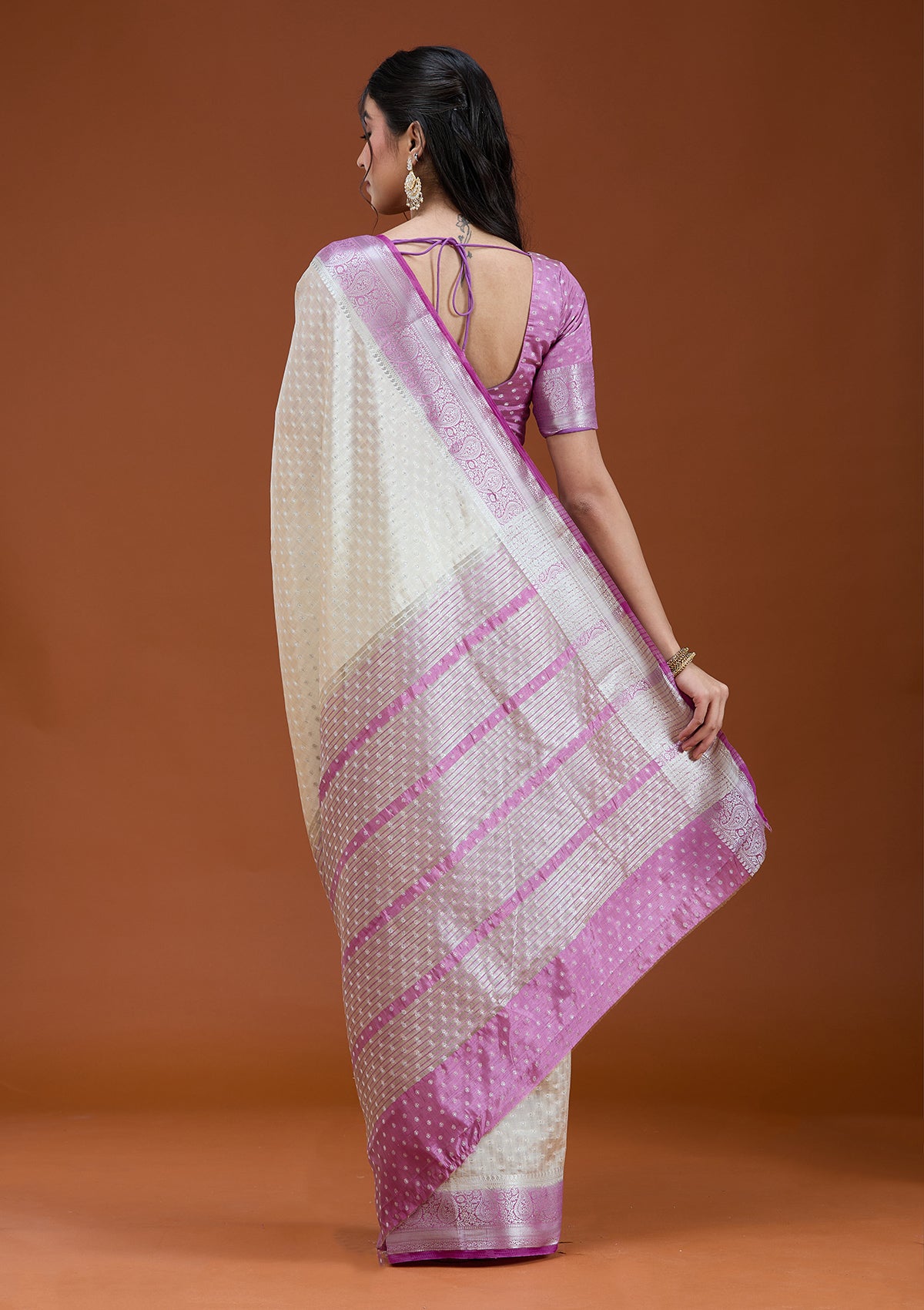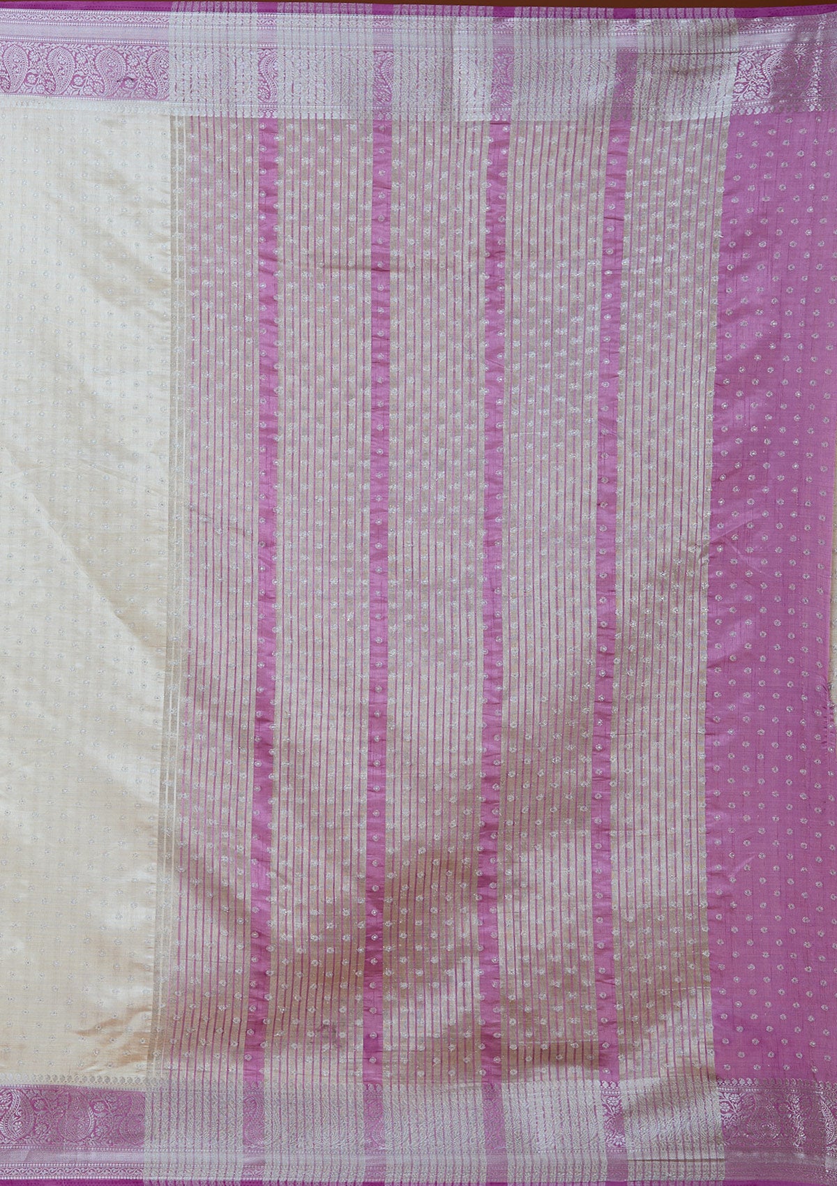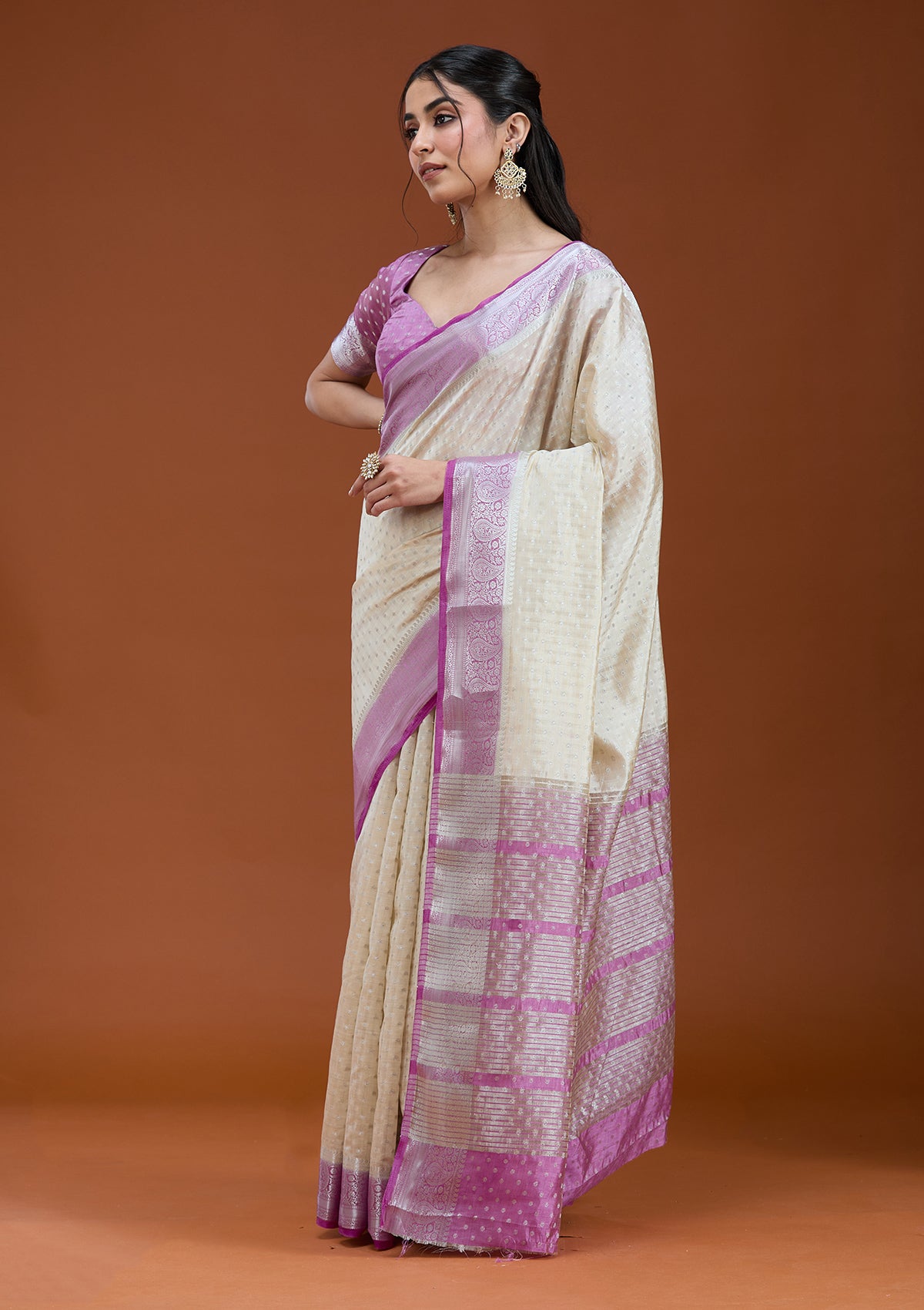 Cream Zari work Silk Saree in Silk fabric. The Silk Saree is elevated with Woven embroidery. It comes with an Unstitched blouse. Comes with the Koskii promise of premium quality.