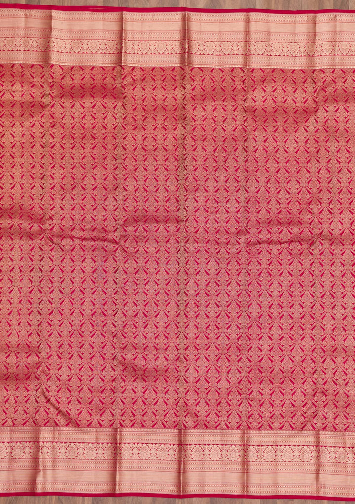 Maroon Saree in Pure Silk fabric. The Saree is elevated with Zariwork embroidery. It comes with an Unstitched blouse. Comes with the Indian Silk Mark certification.