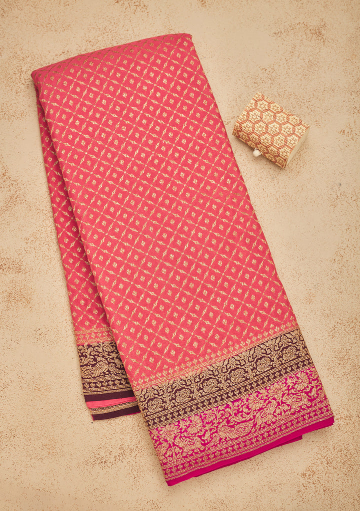 Peach Saree in Art Silk fabric. The Saree is elevated with Zariwork embroidery. It comes with an Unstitched blouse. Comes with the Koskii promise of premium quality.