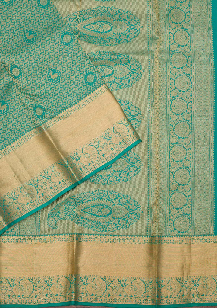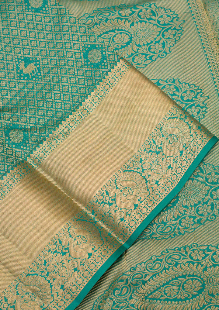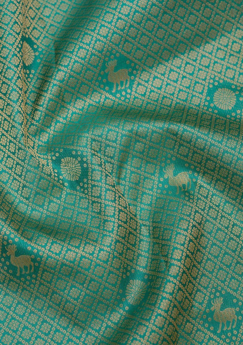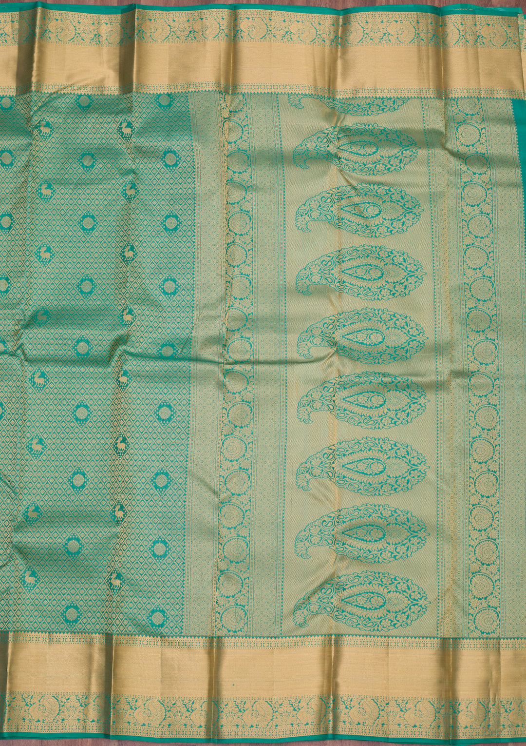 Sea Green Saree in Pure Silk fabric. The Saree is elevated with Zariwork embroidery. It comes with an Unstitched blouse. Comes with the Koskii promise of premium quality.