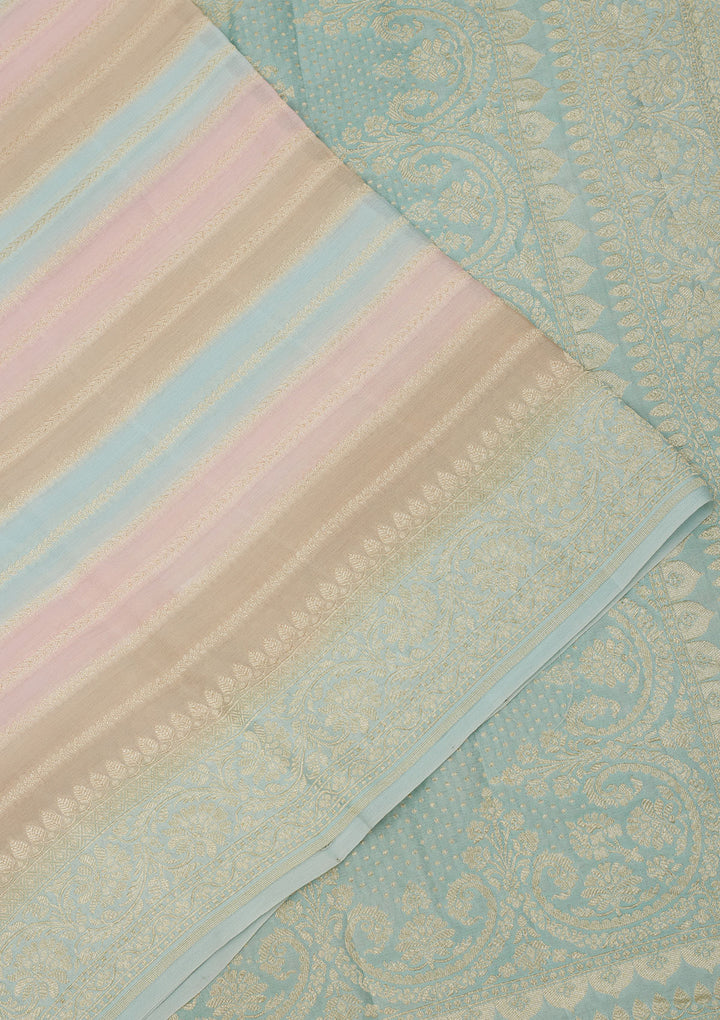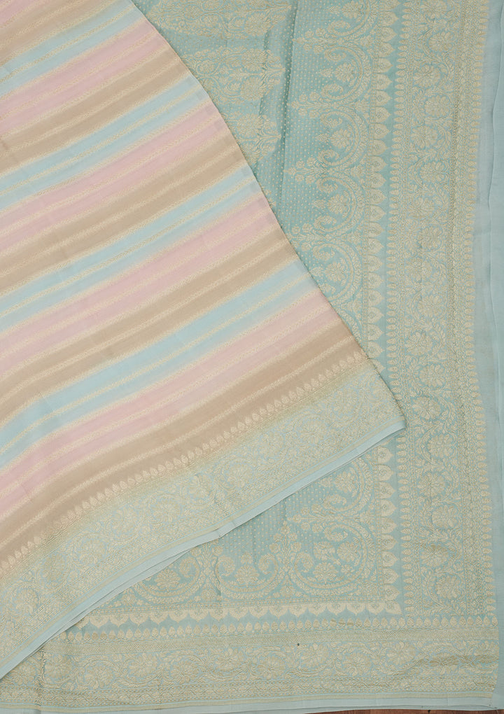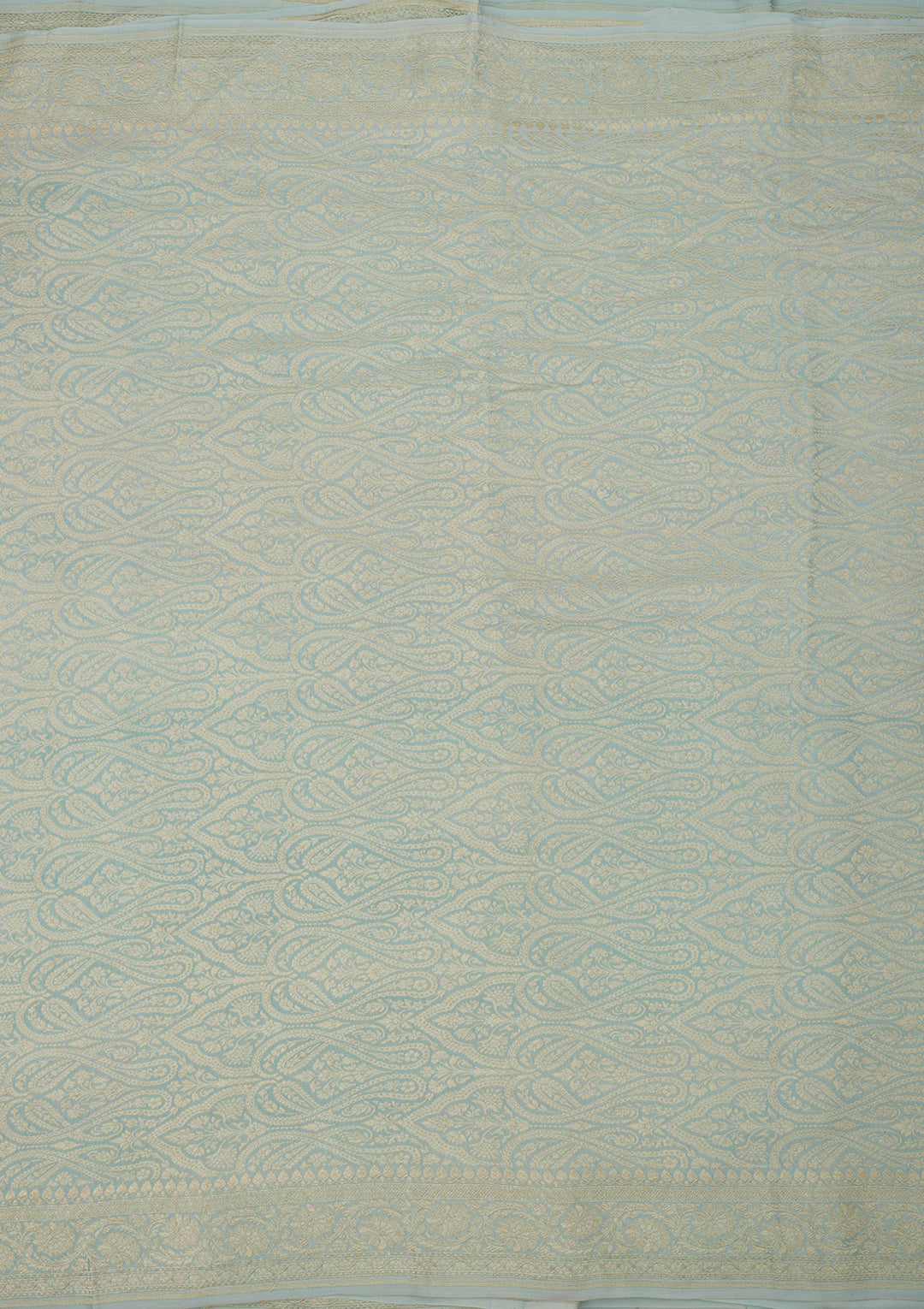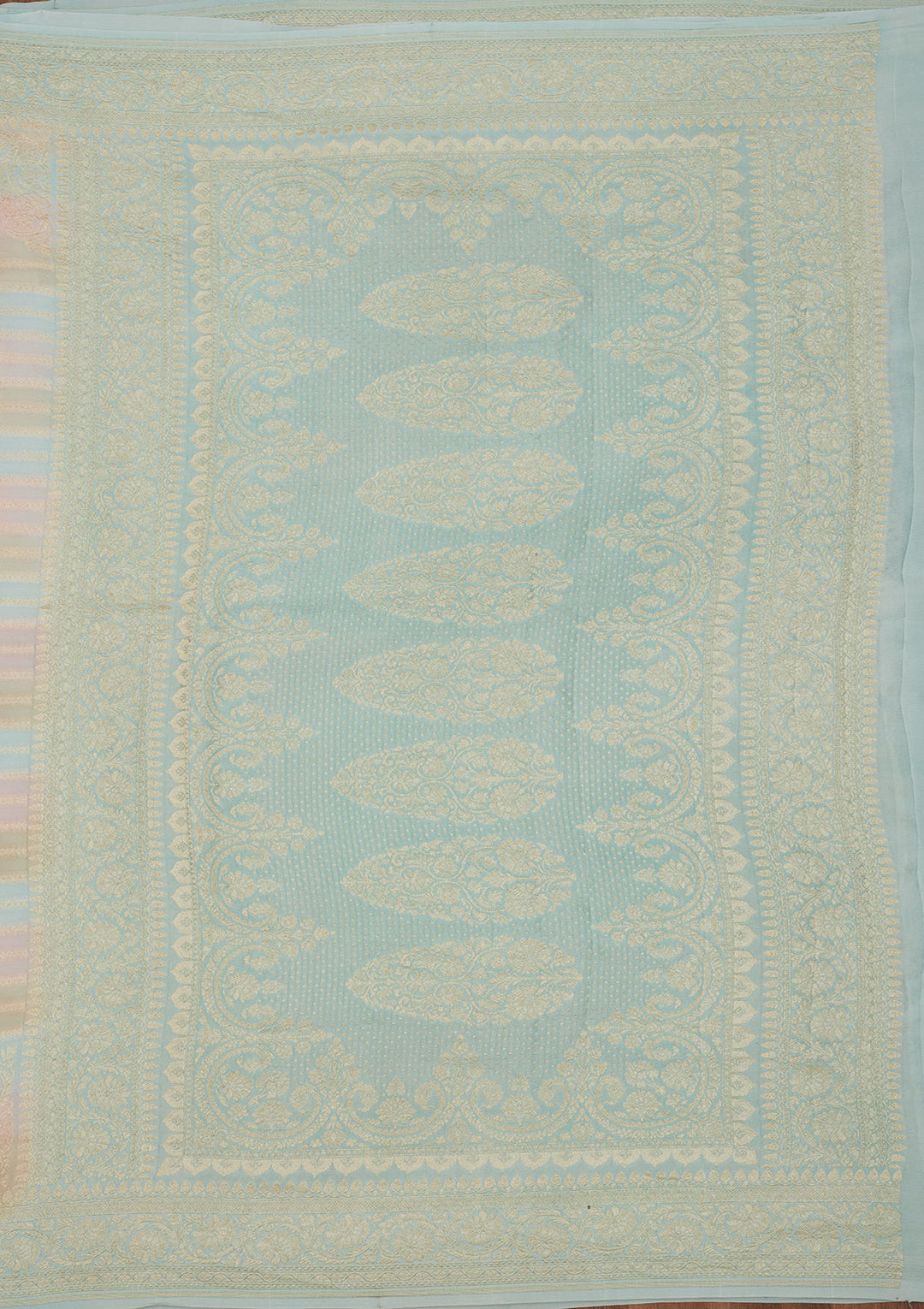 Sky Blue Saree in Pure Silk fabric. The Saree is elevated with Zariwork embroidery. It comes with an Unstitched blouse. Comes with the Koskii promise of premium quality.