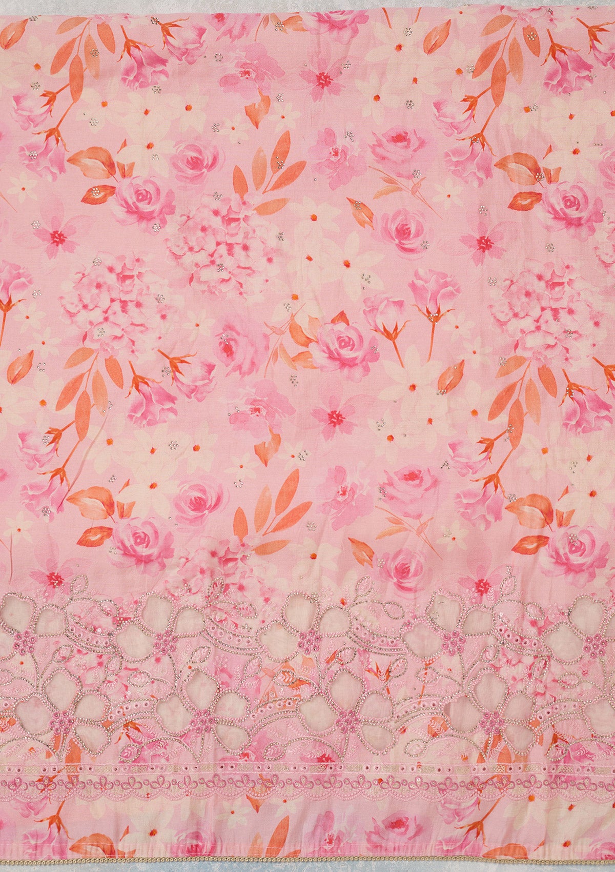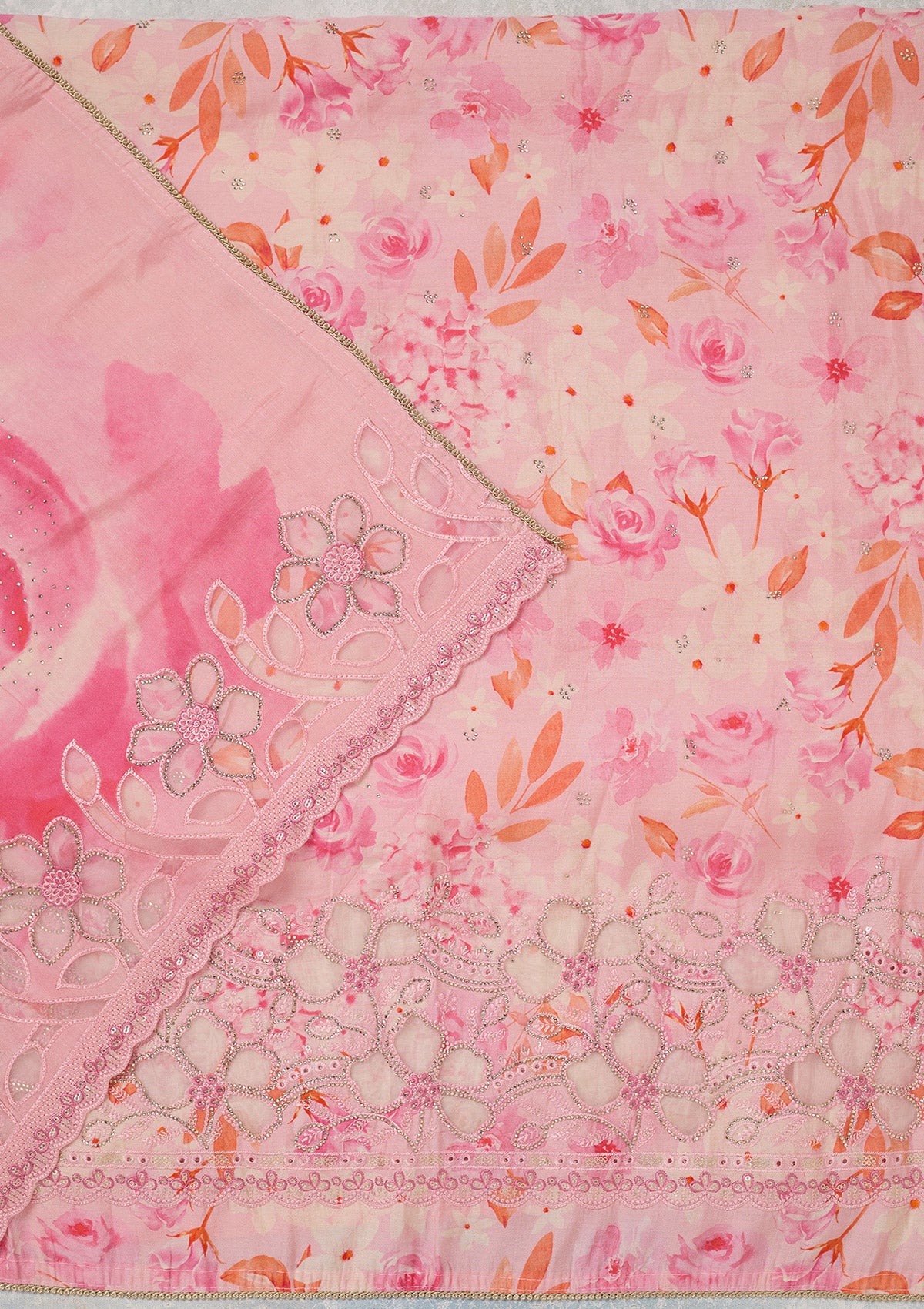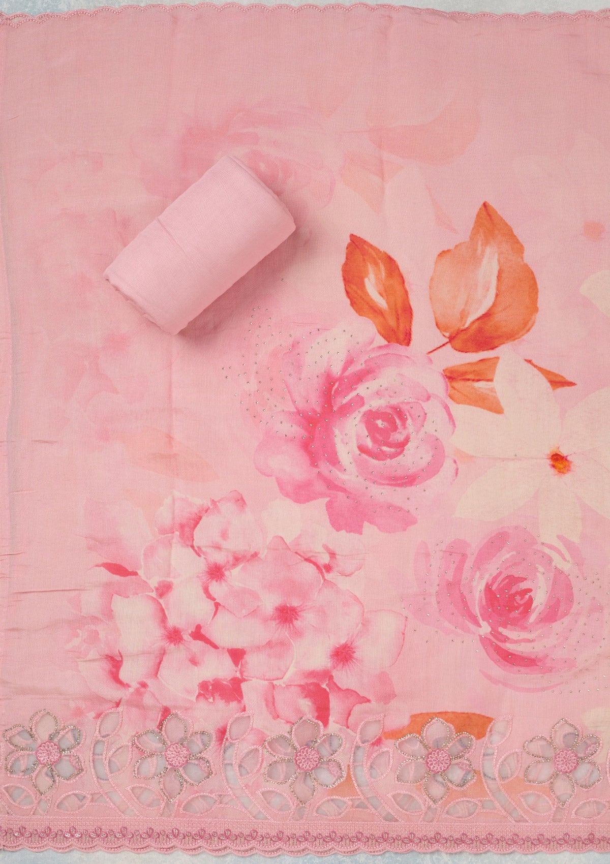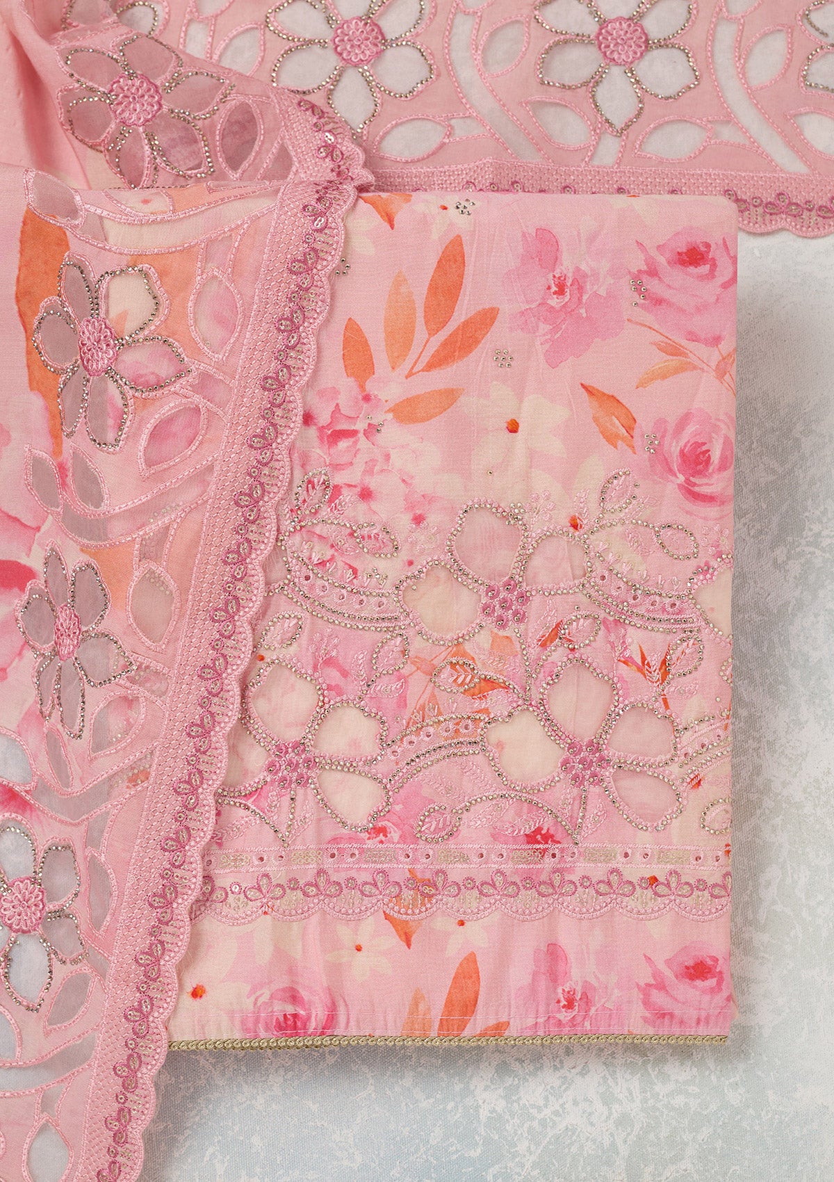 Pink Stonework (Gold) Crepe Unstitched Salwar Suit