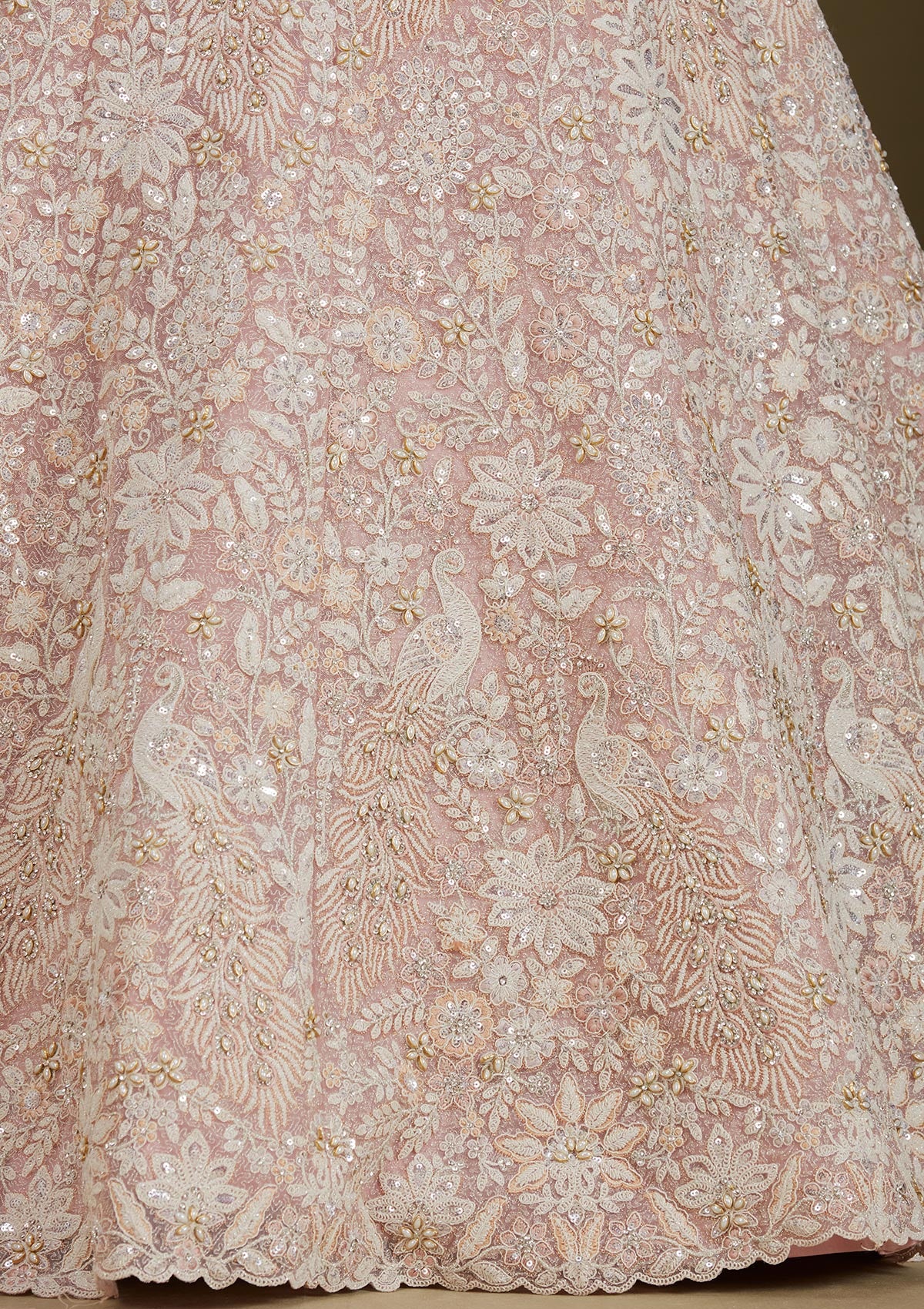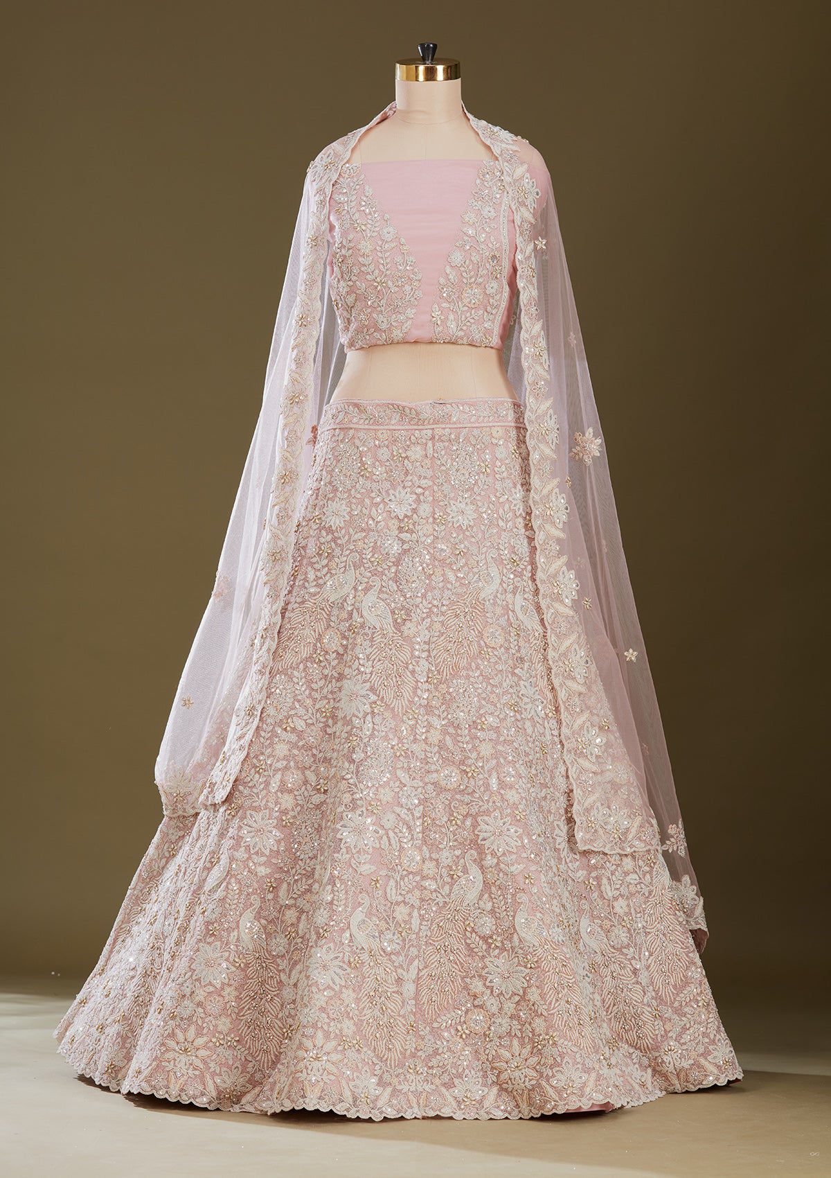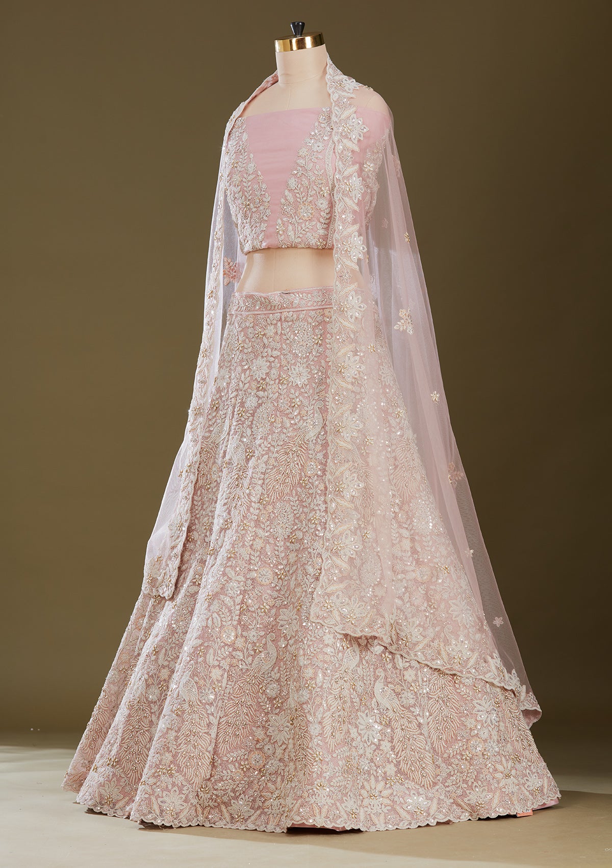 Pink Readymade Lehenga in Net fabric. The Lehenga is embellished with Sequins embroidery. Accompanied with an Readymade blouse and dupatta. Comes with the Koskii promise of premium quality.