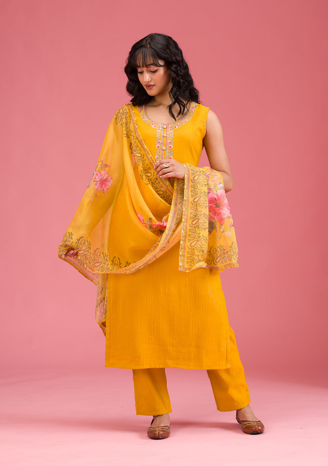 | Peacock Blue Threadwork Raw Silk Readymade Salwar Suit | ₹ 2,863 | |