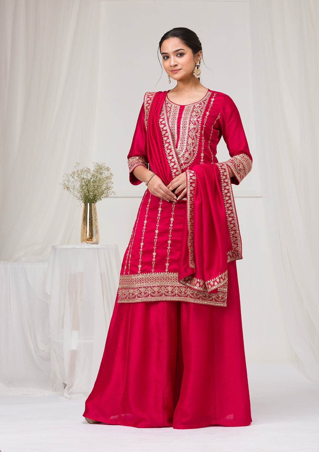 | Rani Pink Threadwork Crepe Readymade Salwar Suit | ₹ 2,863 | |