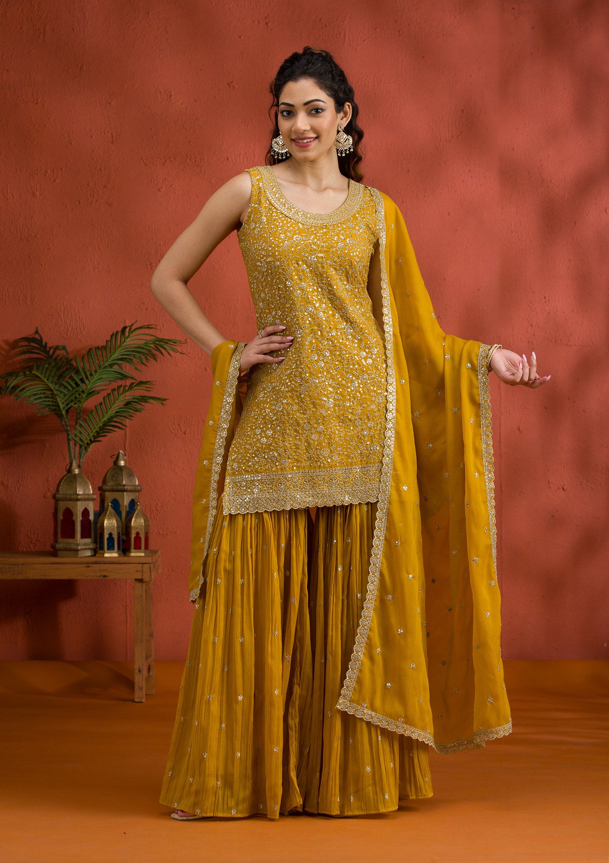 Yellow Silver Zariwork Georgette Readymade Sharara Suit