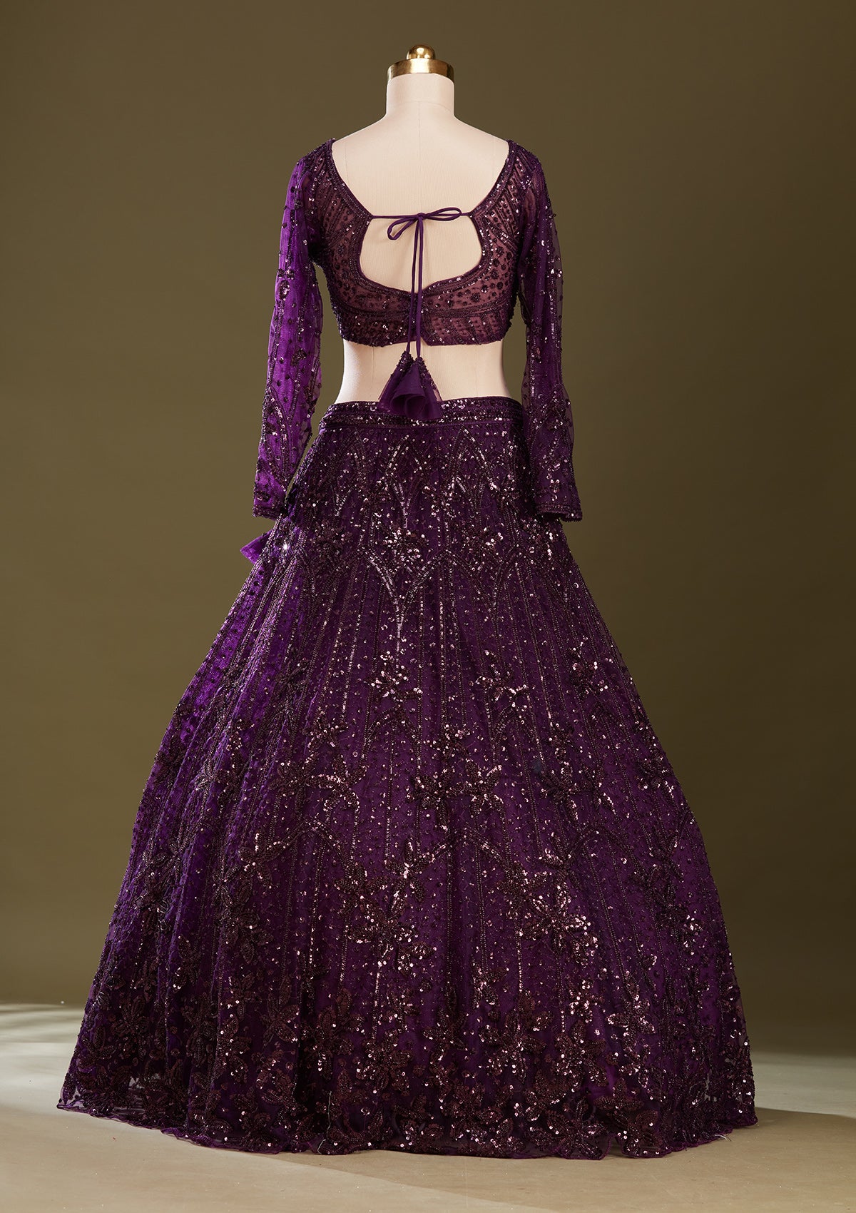 Purple Readymade Lehenga in Net fabric. The Lehenga is embellished with Sequins embroidery. Accompanied with an Readymade blouse and dupatta. Comes with the Koskii promise of premium quality.