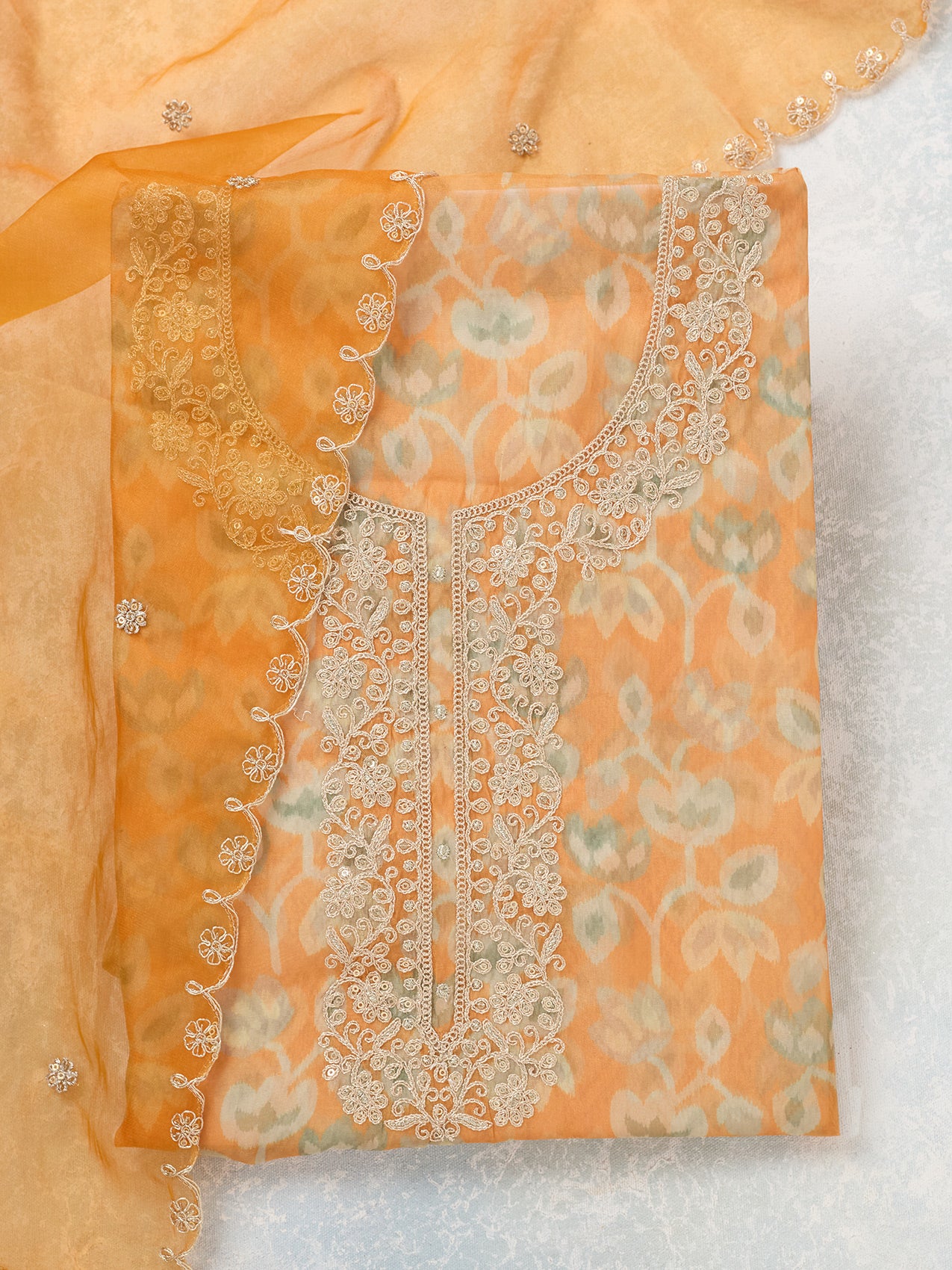 Mustard Threadwork Tissue Unstitched Salwar Suit