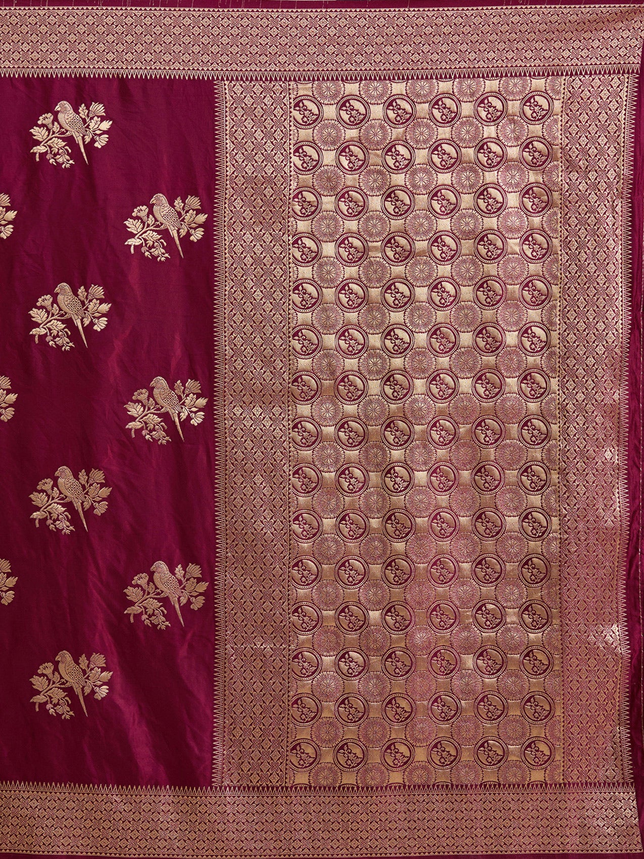 Wine Silk_Saree in Art Silk fabric. The Silk_Saree is elevated with Zariwork embroidery. It comes with an Unstitched blouse. Comes with the Koskii promise of premium quality.