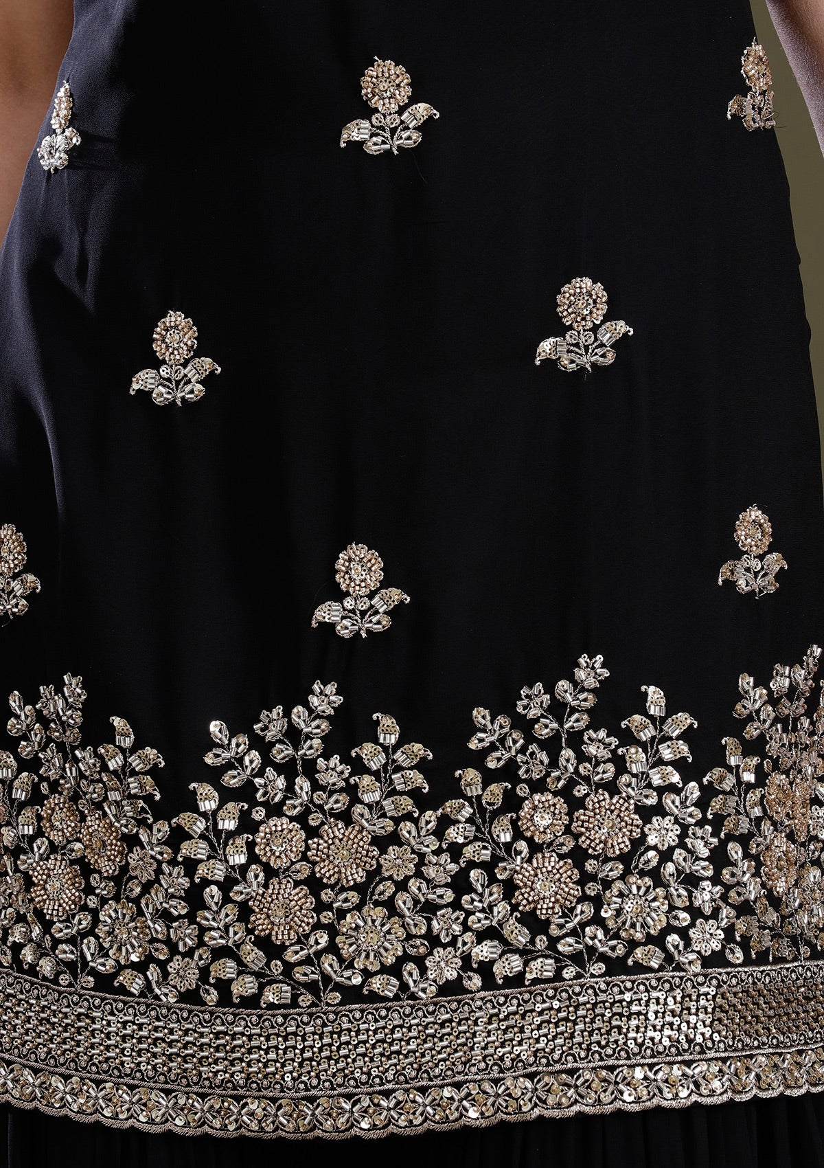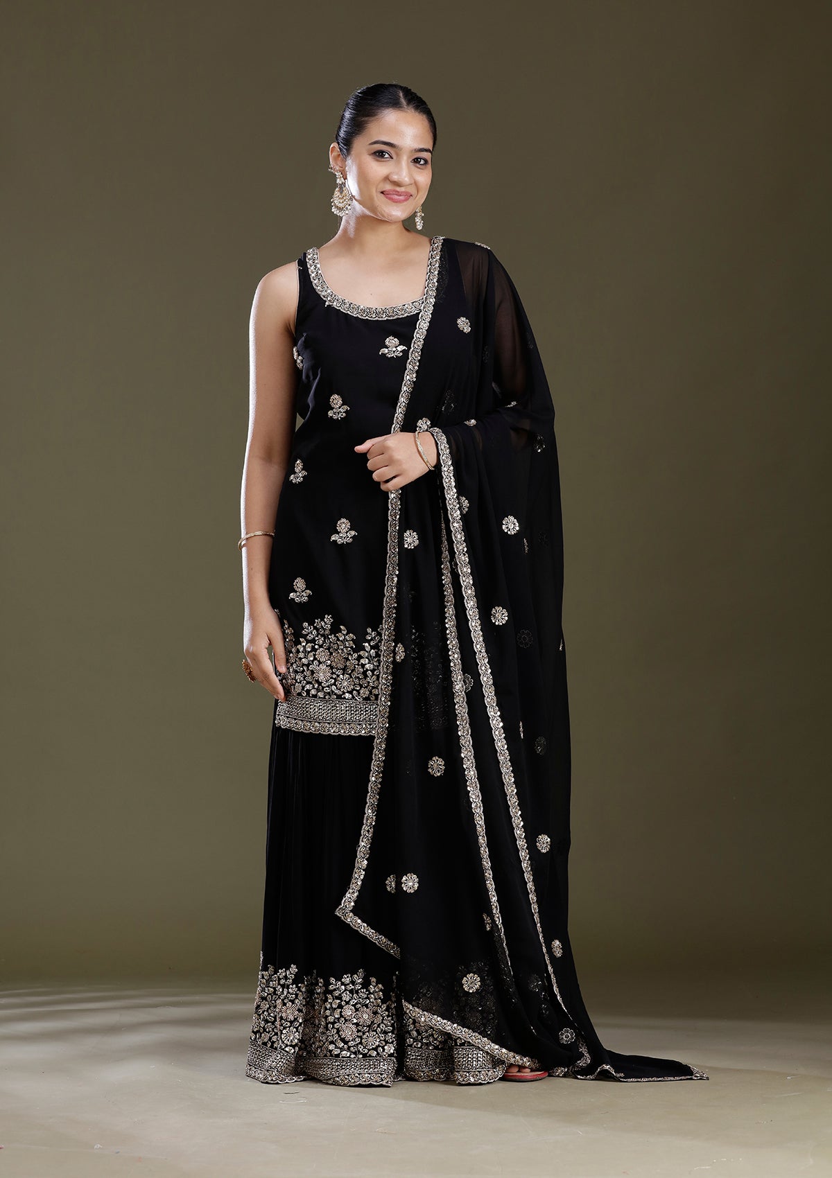 Black Salwar Suit in Tissue fabric. The Salwar Suit is embellished with Sequins embroidery. Accompanied with a bottom and dupatta. Comes with the Koskii promise of premium quality.