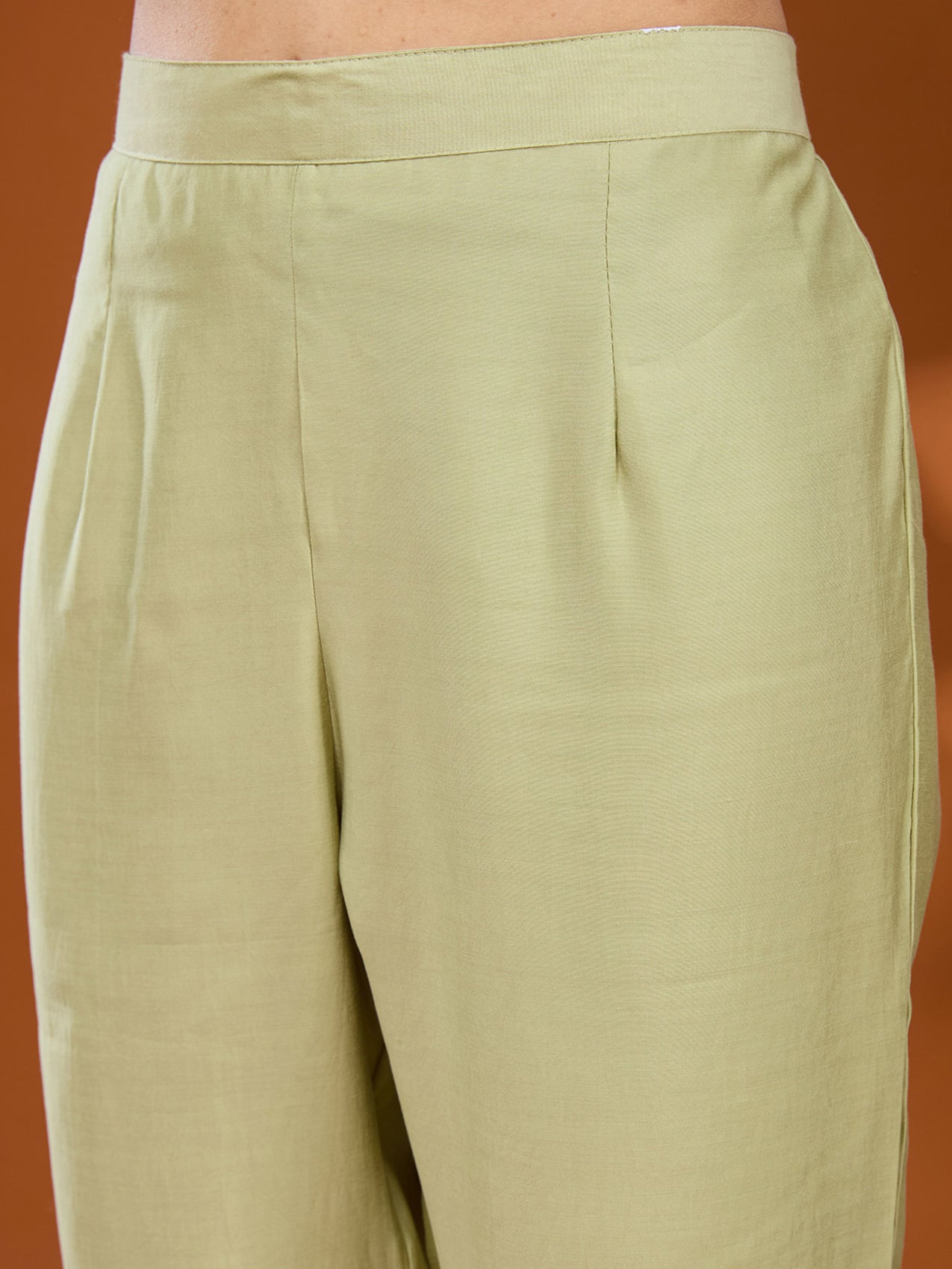 Pista Green Salwar Suit in Chanderi fabric. The Salwar Suit is embellished with Threadwork embroidery. Accompanied with a bottom and dupatta. Comes with the Koskii promise of premium quality.