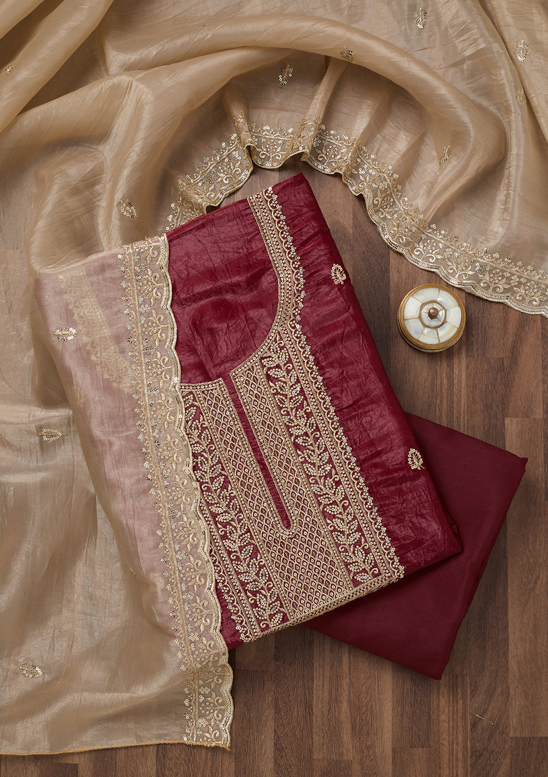 | Wine Zariwork (Gold) Dola Silk Unstitched Salwar Suit | ₹ 1,992 | |