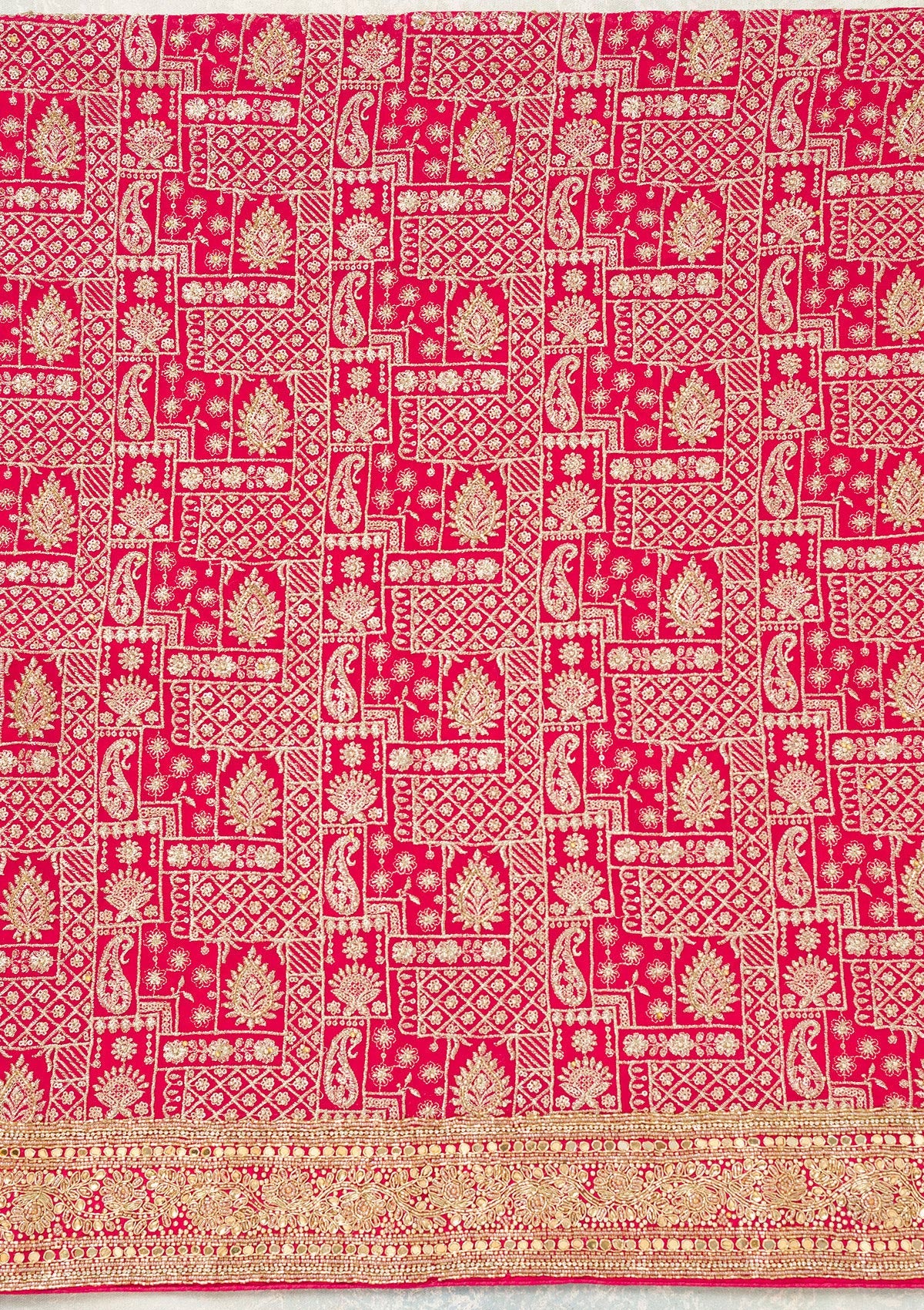 Rani Pink Zariwork (Gold) Georgette Unstitched Salwar Suit