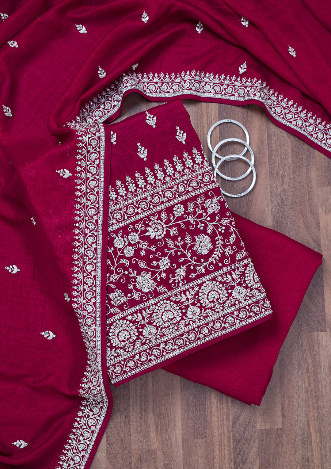 | Red Zariwork (Gold) Soft Raw Silk Unstitched Salwar Suit | ₹ 6,792 | |
