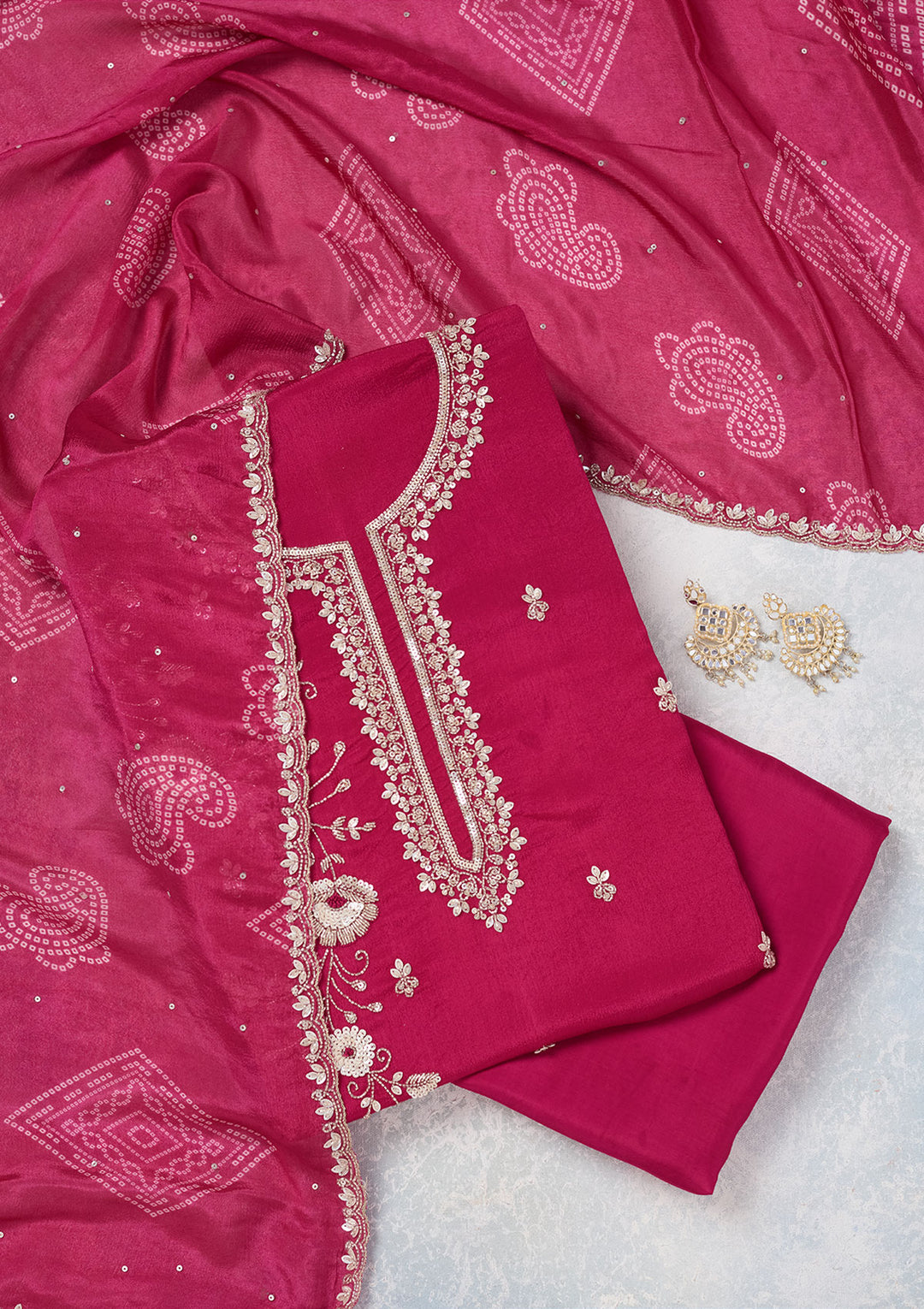 | Rani Pink Sequins Organza Unstitched Salwar Suit | ₹ 3,592 | |
