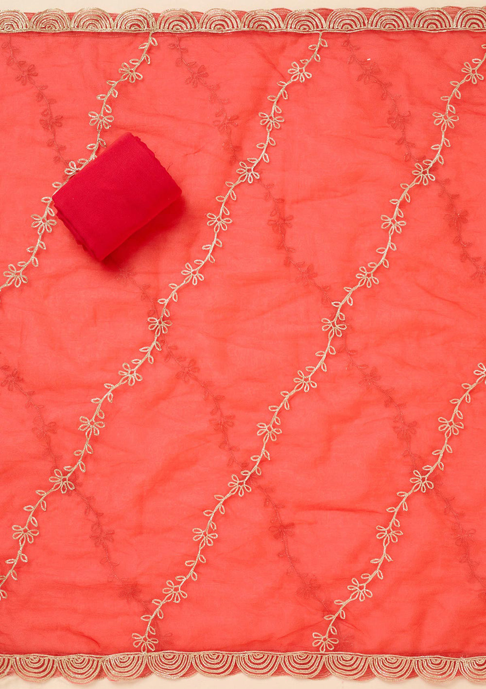 | Red Zariwork (Gold) Organza Unstitched Salwar Suit | ₹ 2,392 | |