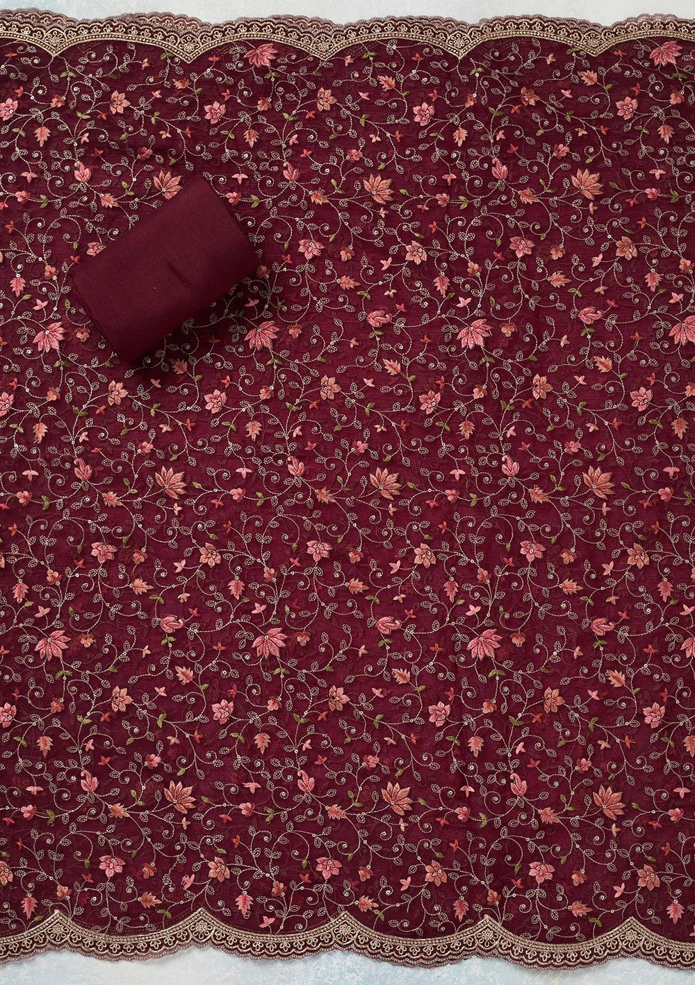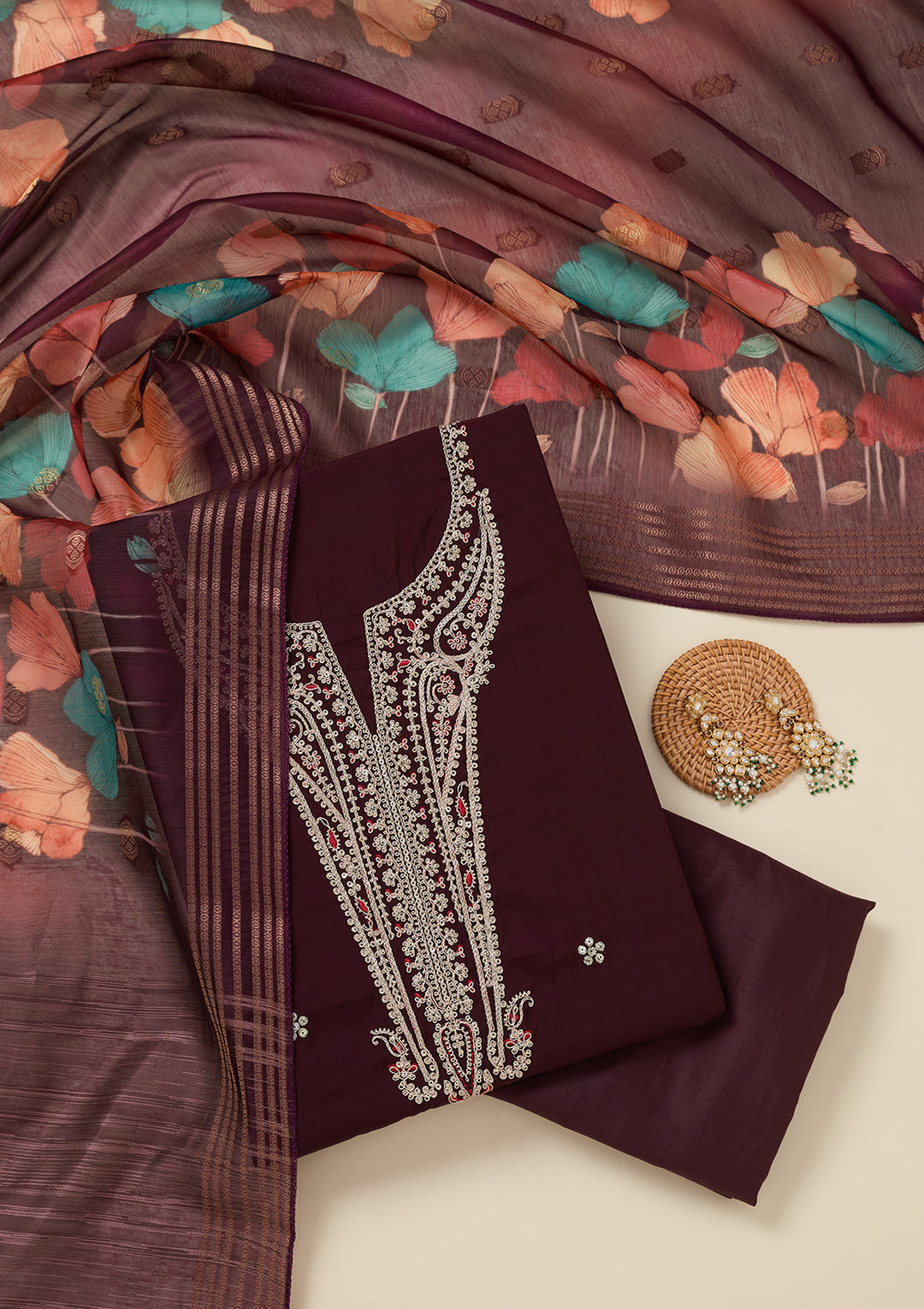 | Wine Zariwork (Gold) Dola Silk Unstitched Salwar Suit | ₹ 1,992 | |