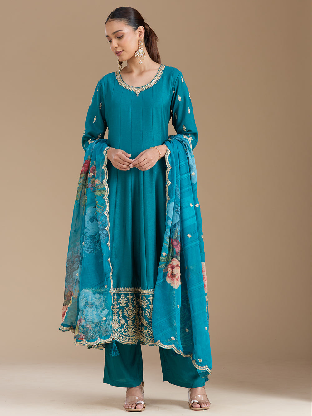 | Mehandi Green Cording Chanderi Readymade Salwar Suit | ₹ 2,454 | |
