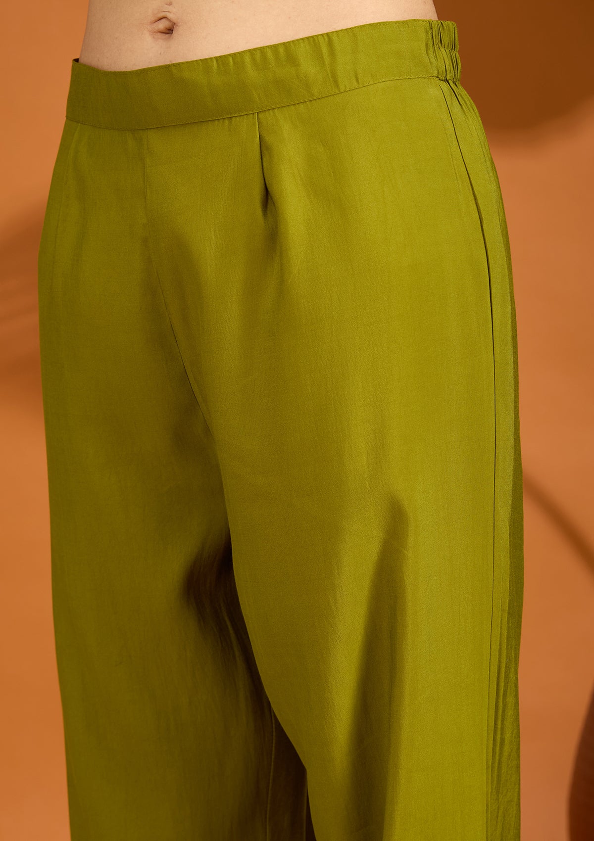 - Mehandi Green Salwar Suit in Chanderi fabric