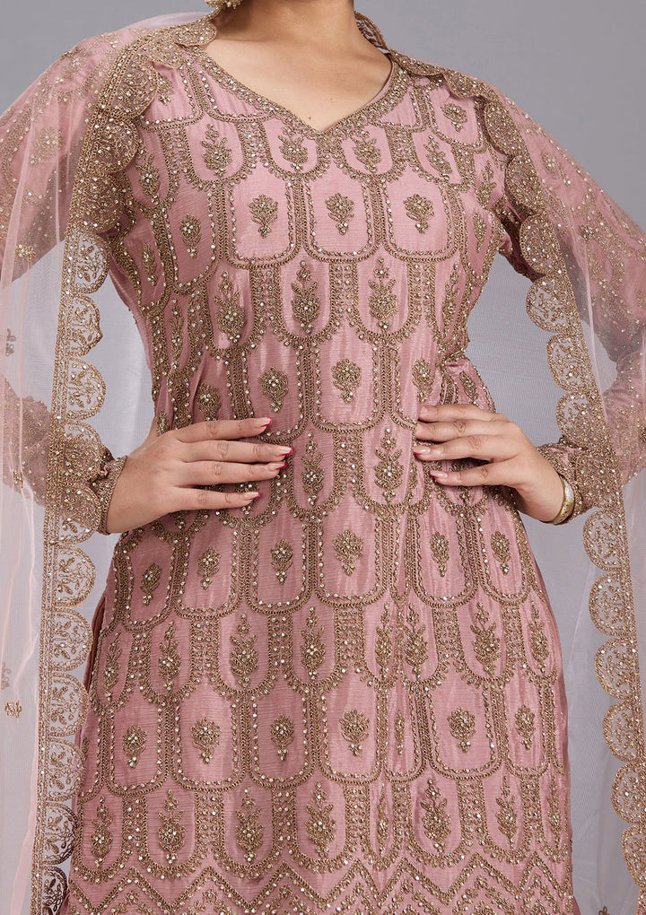 Pink Stonework (Gold) Georgette Readymade Salwar Suit