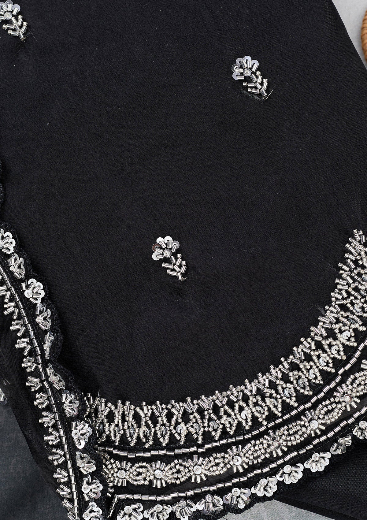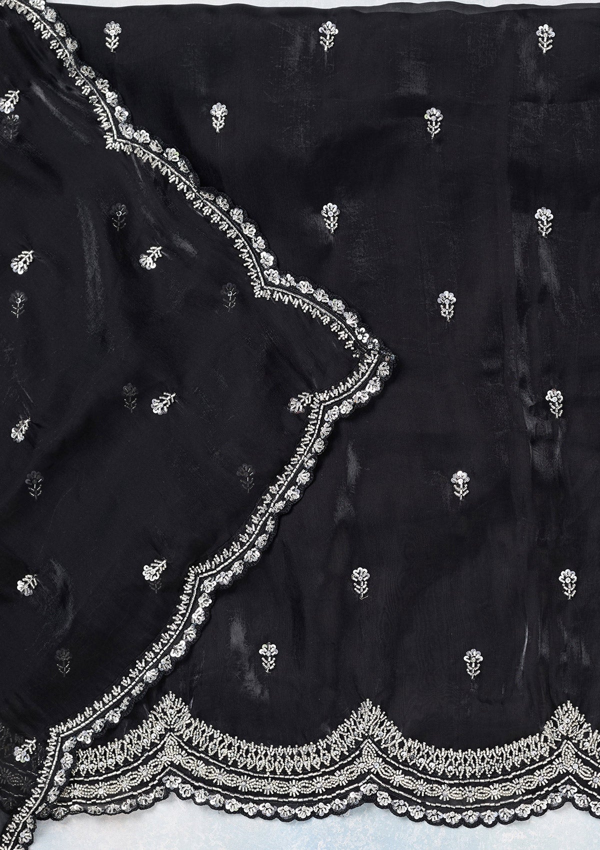 Black Salwar Suit in Tissue fabric The Salwar Suit is embellished with Cutdana embroidery Accompanied with a bottom and dupatta Comes with the Koskii promise of premium quality.
