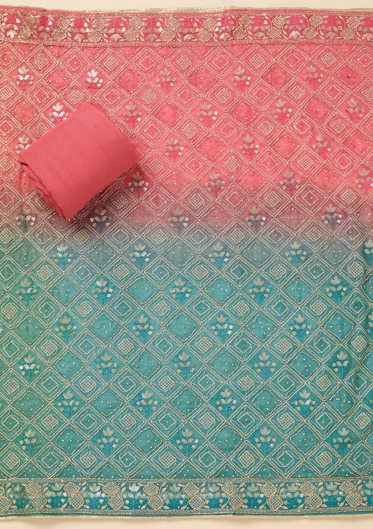 Onion Pink Zardozi (Gold) Georgette Unstitched Salwar Suit
