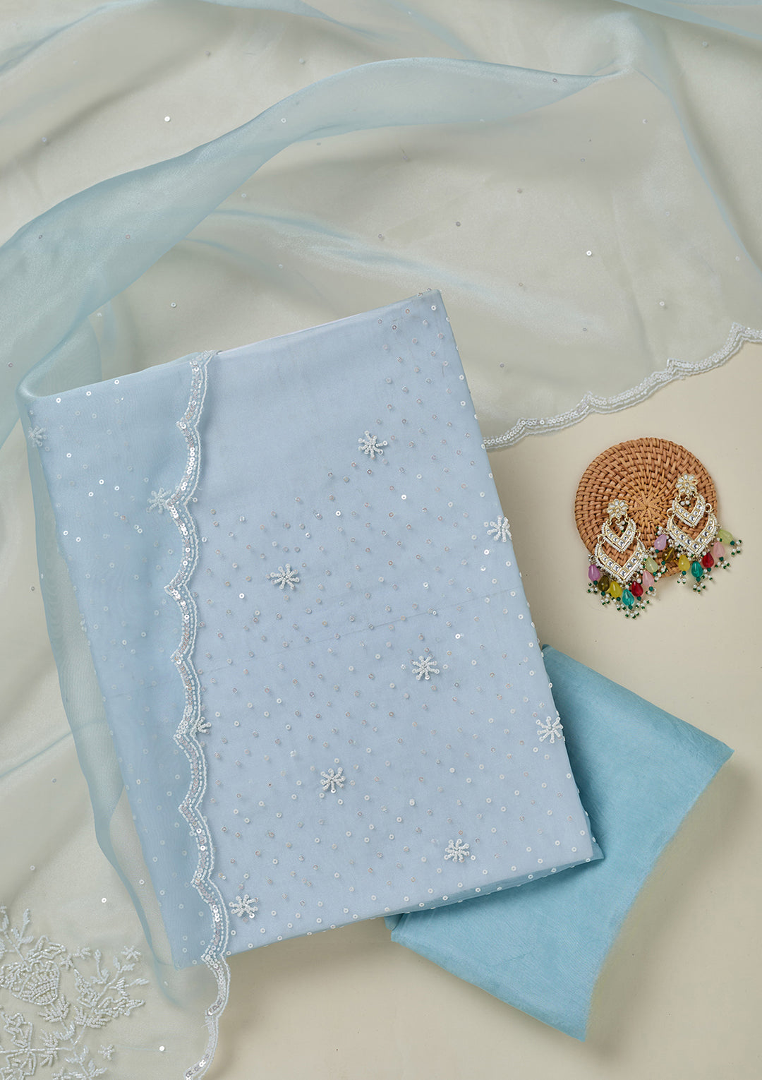 Sky Blue Cutdana Organza Unstitched Salwar Suit | ₹ 6,490 | |