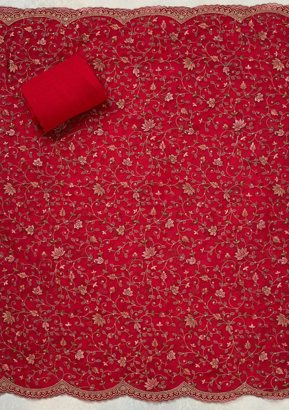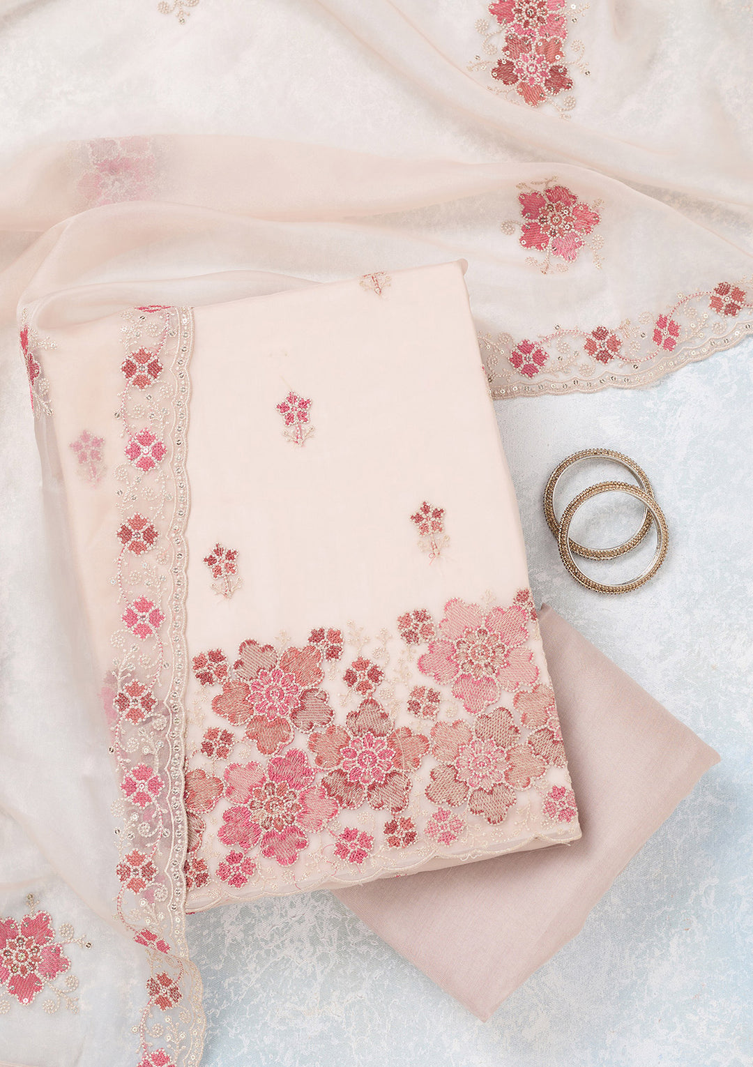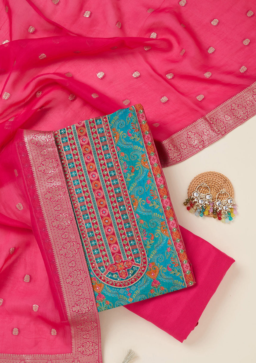 Rani Pink Zariwork Semi Crepe Unstitched Salwar Suit | ₹ 4,490 | |