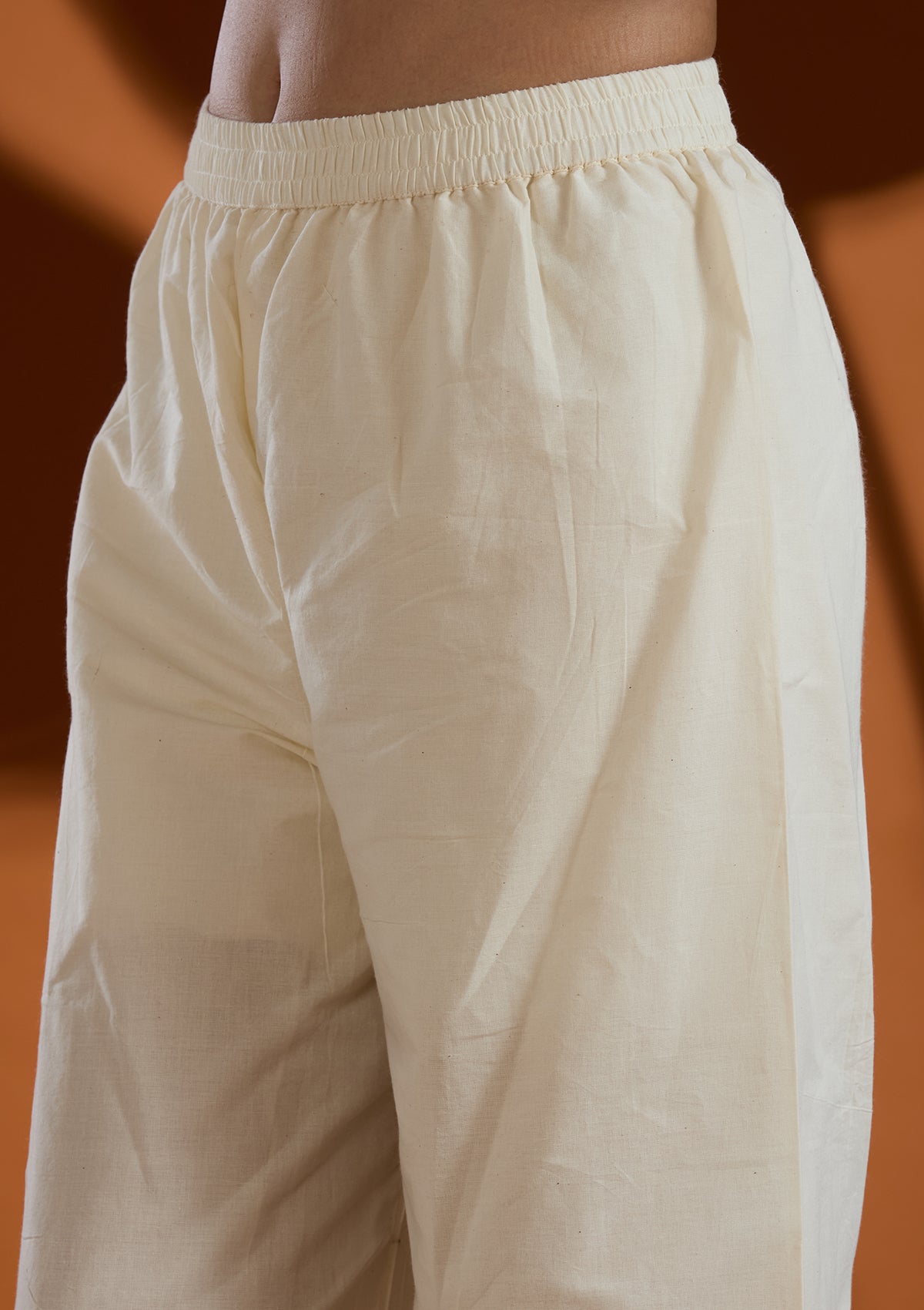 Off White Salwar Suit in Chanderi fabric. The Salwar Suit is embellished with Threadwork embroidery. Accompanied with a bottom and dupatta. Comes with the Koskii promise of premium quality.