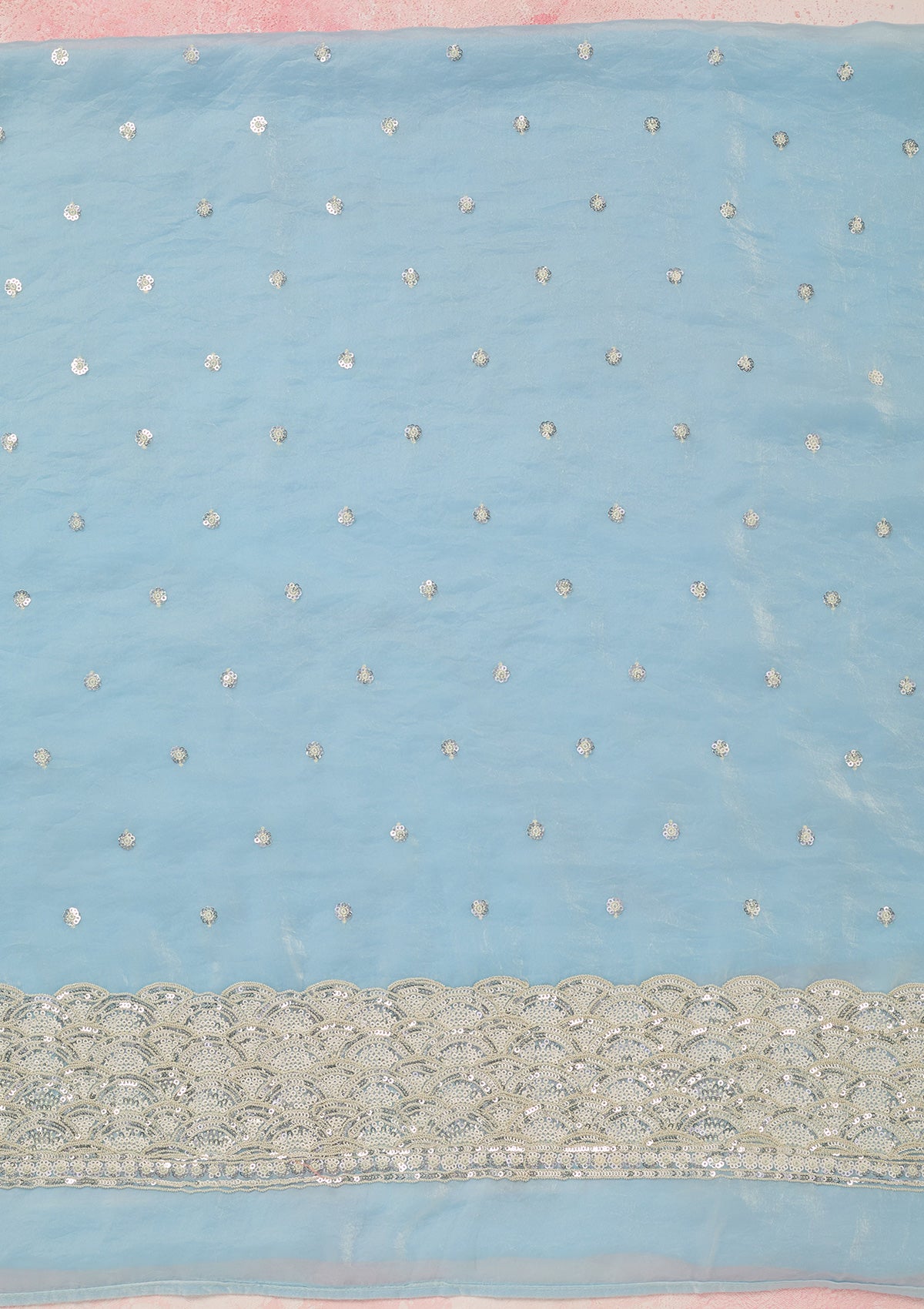 Sky Blue Sequins Tissue Unstitched Salwar Suit