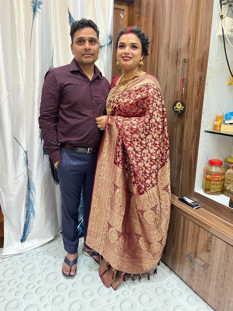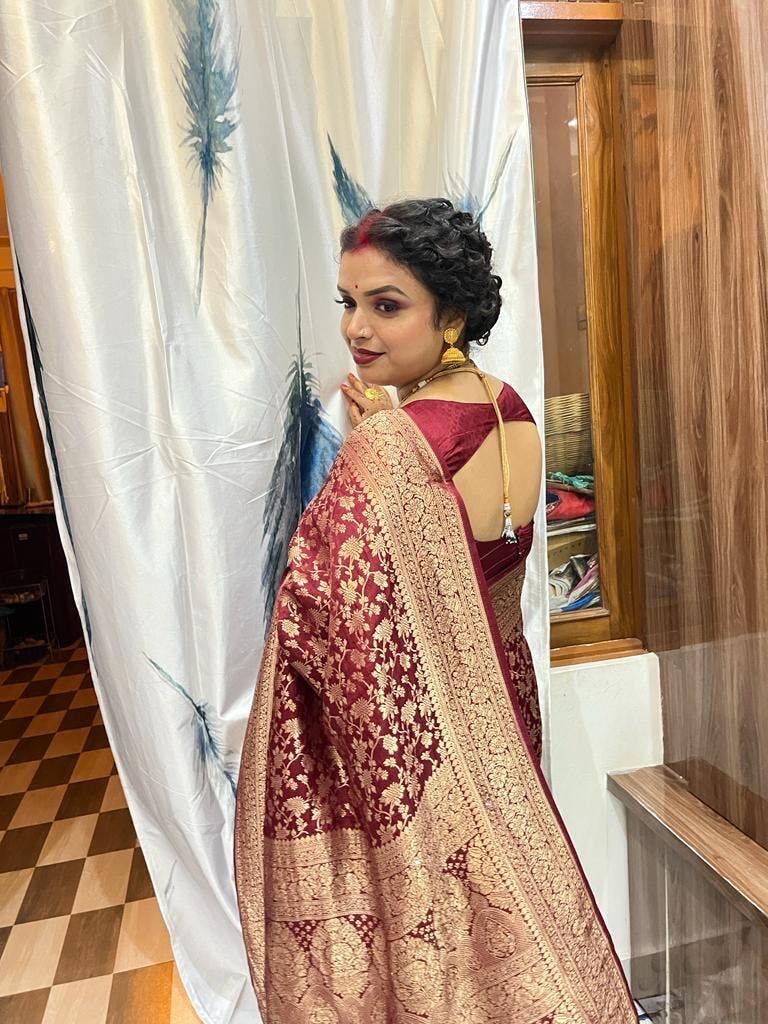 Maroon Zari Work Banarasi Saree