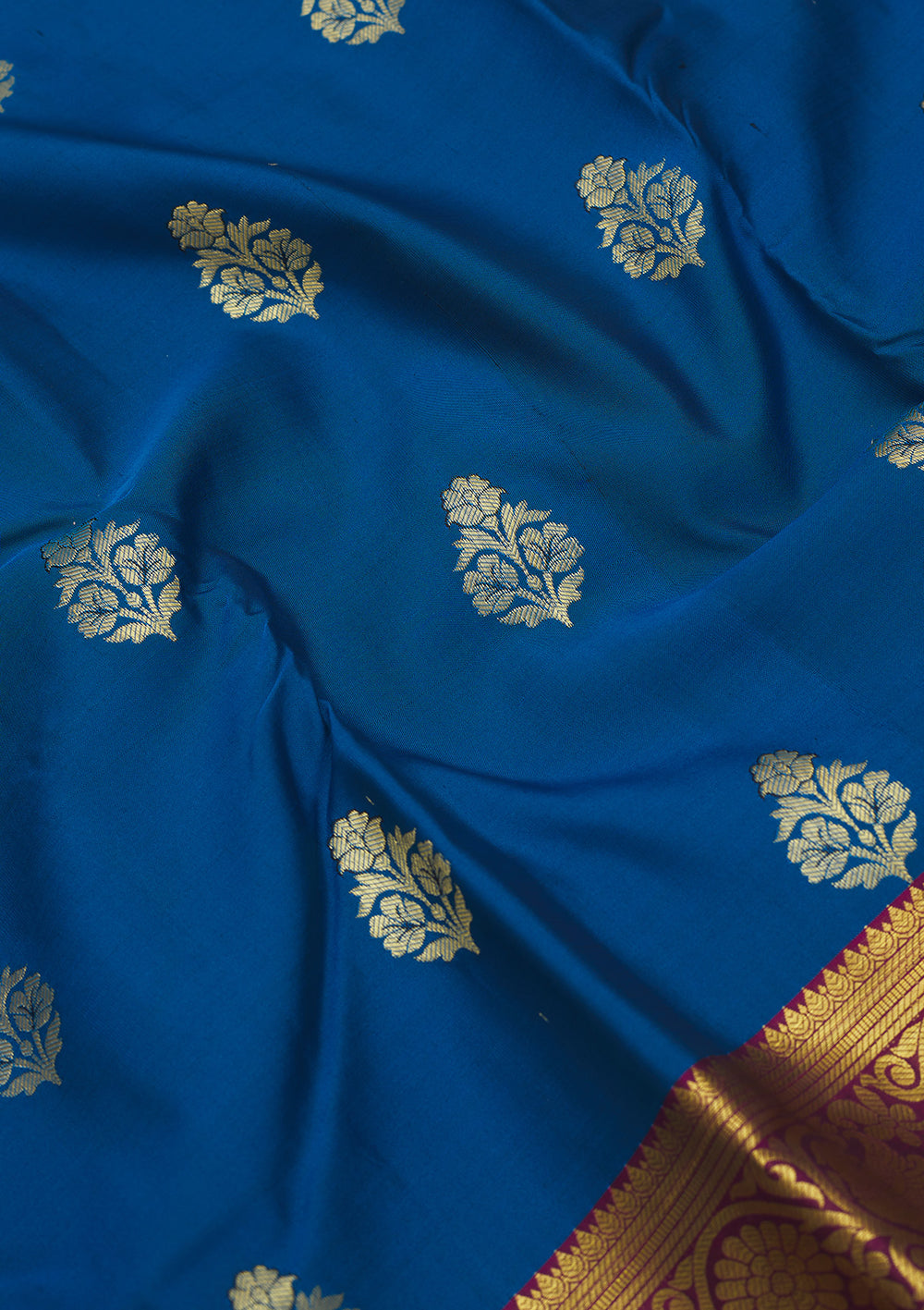 Turquoise Blue Saree in Pure Silk fabric. The Saree is elevated with Zariwork embroidery. It comes with an Unstitched blouse. Comes with the Koskii promise of premium quality.