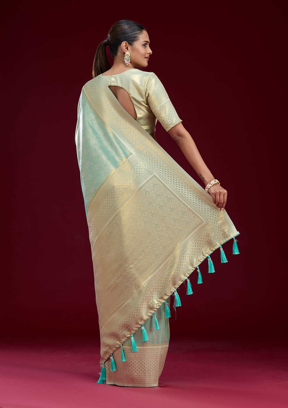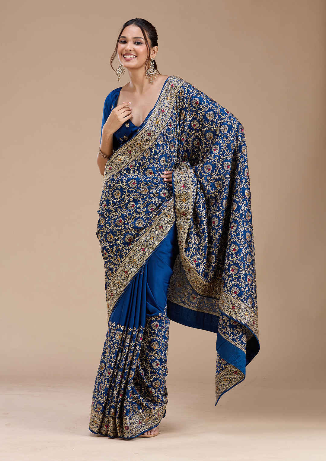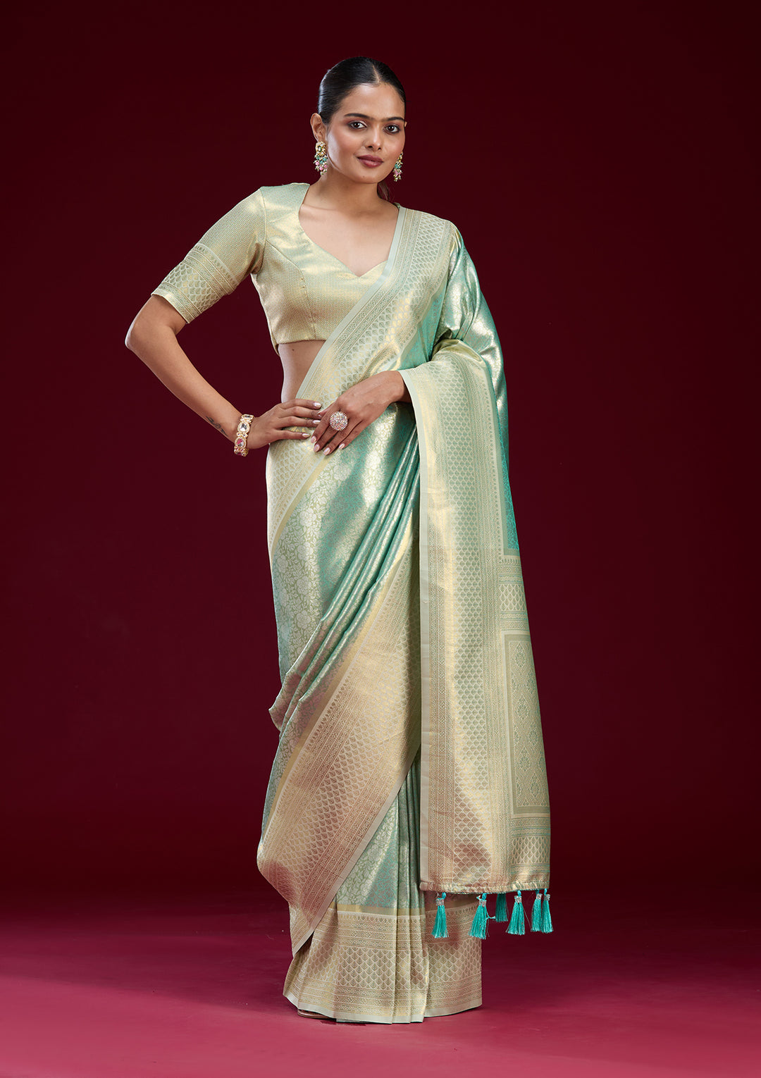 | Peacock Blue Zariwork (Gold) Tissue Saree | ₹ 3,592 | |