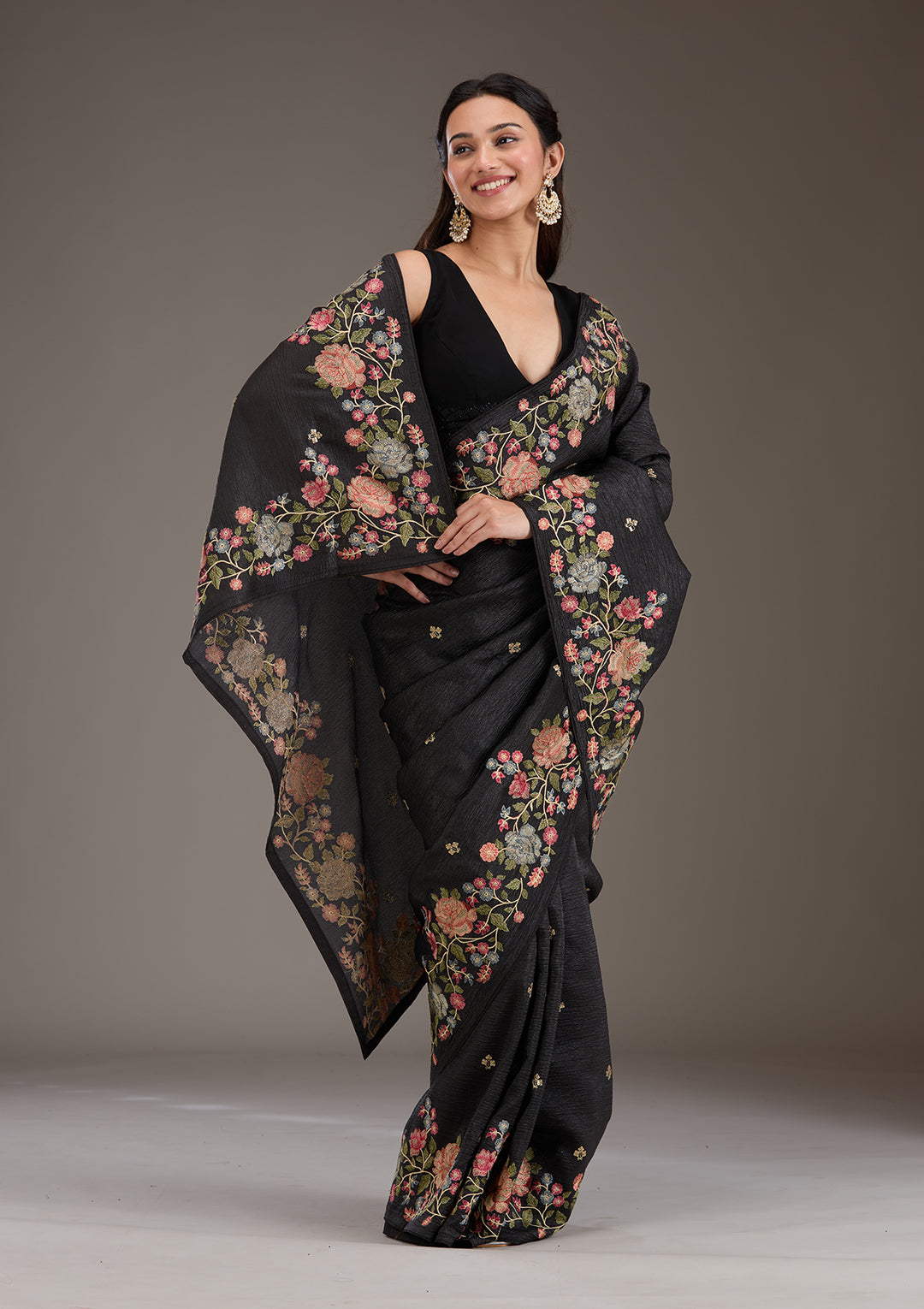 | Black Threadwork Tissue Saree | ₹ 5,592 | |