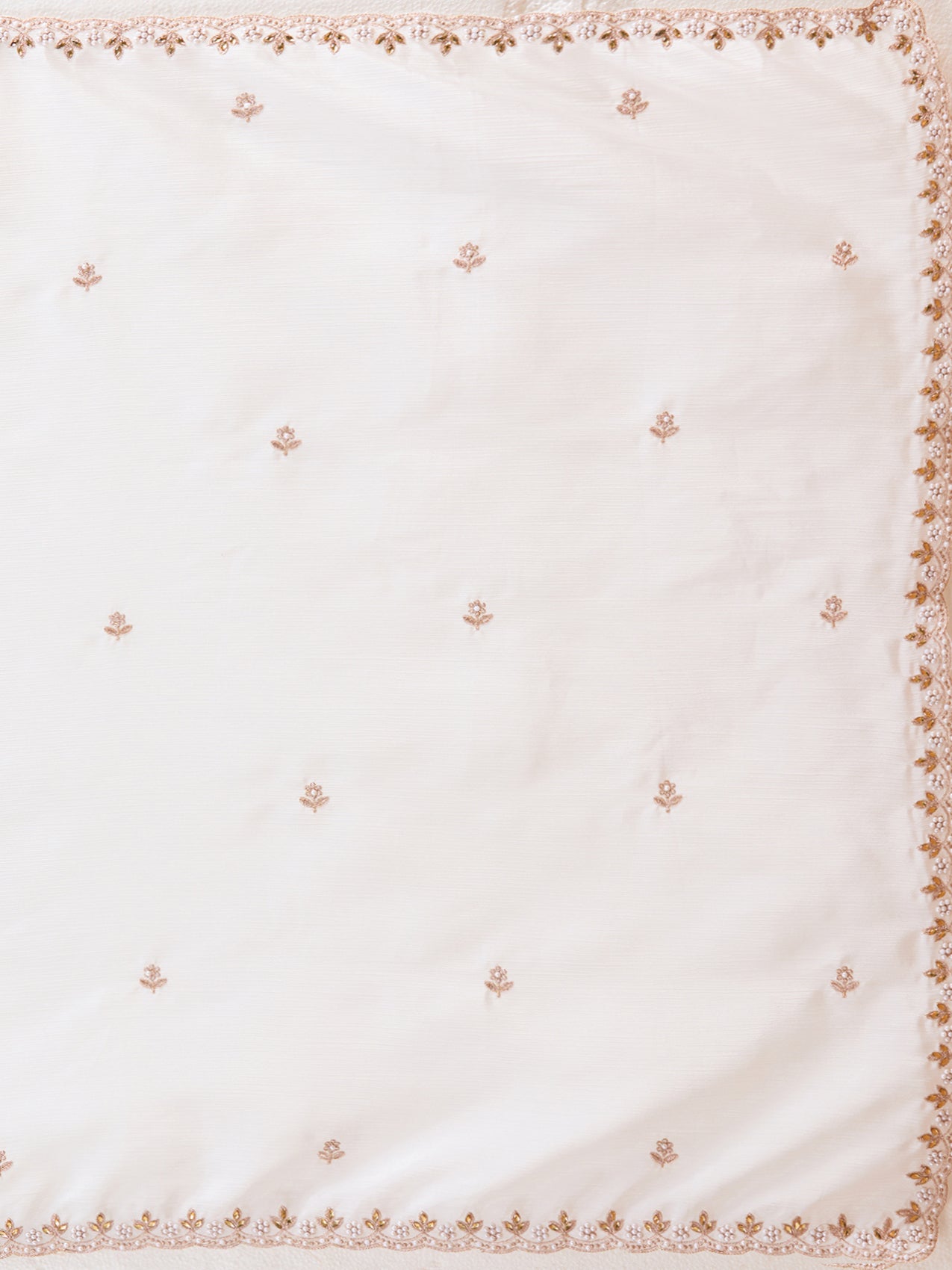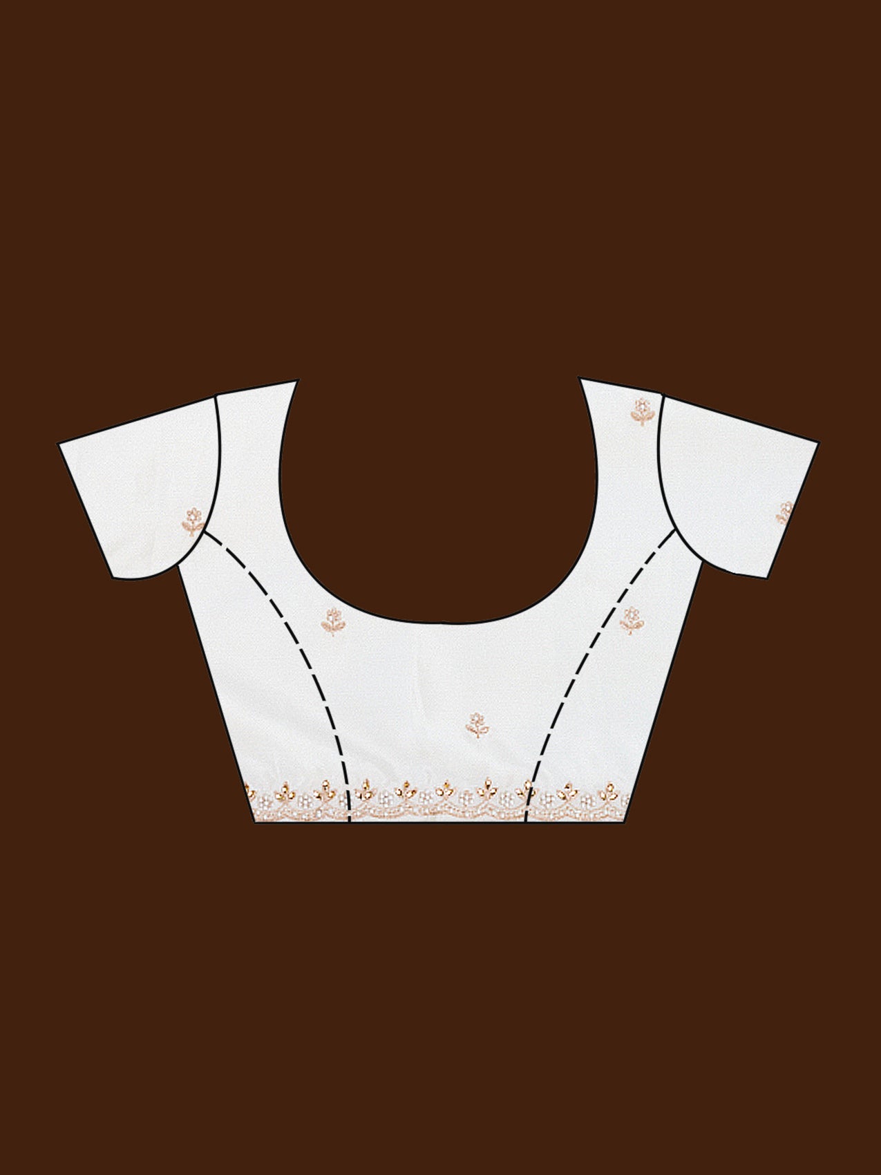 Cream Saree in Chinon fabric. The Saree is elevated with Zariwork (Gold) embroidery. It comes with an Unstitched blouse. Comes with the Koskii promise of premium quality.