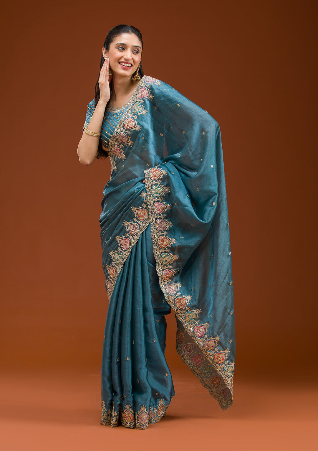| Sea Green Threadwork Tissue Saree | ₹ 3,992 | |