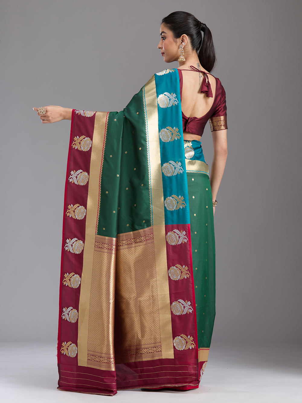 • Green colour sarees denote greenery and lushness and are typically worn during harvest festivals and wedding ceremonies.