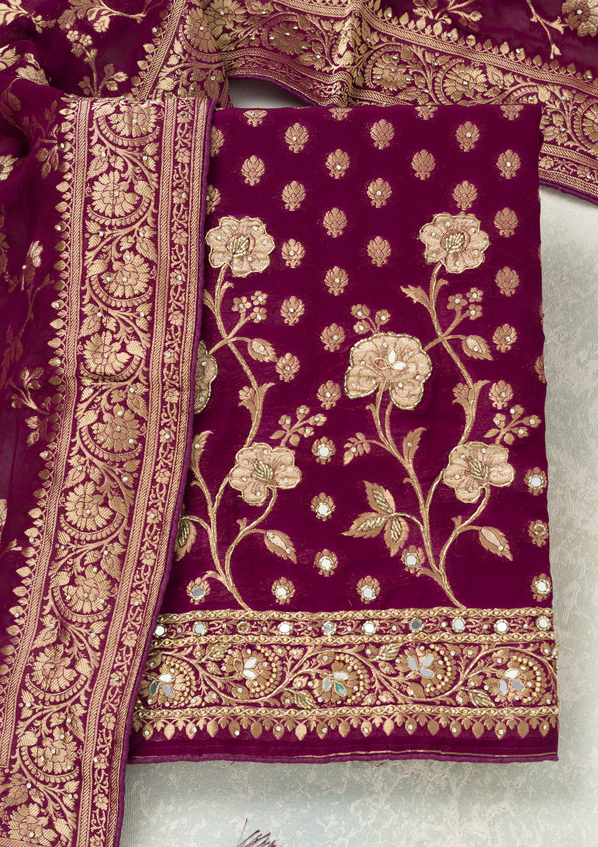 Purple Stonework (Gold) Dola Silk Unstitched Salwar Suit