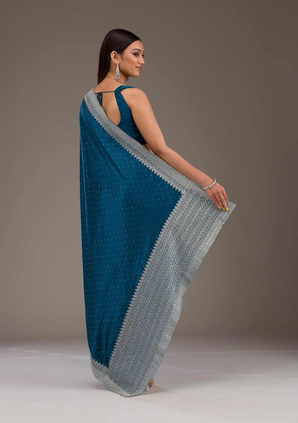 | Peacock Blue Stonework Satin Saree | ₹ 2,792 | |