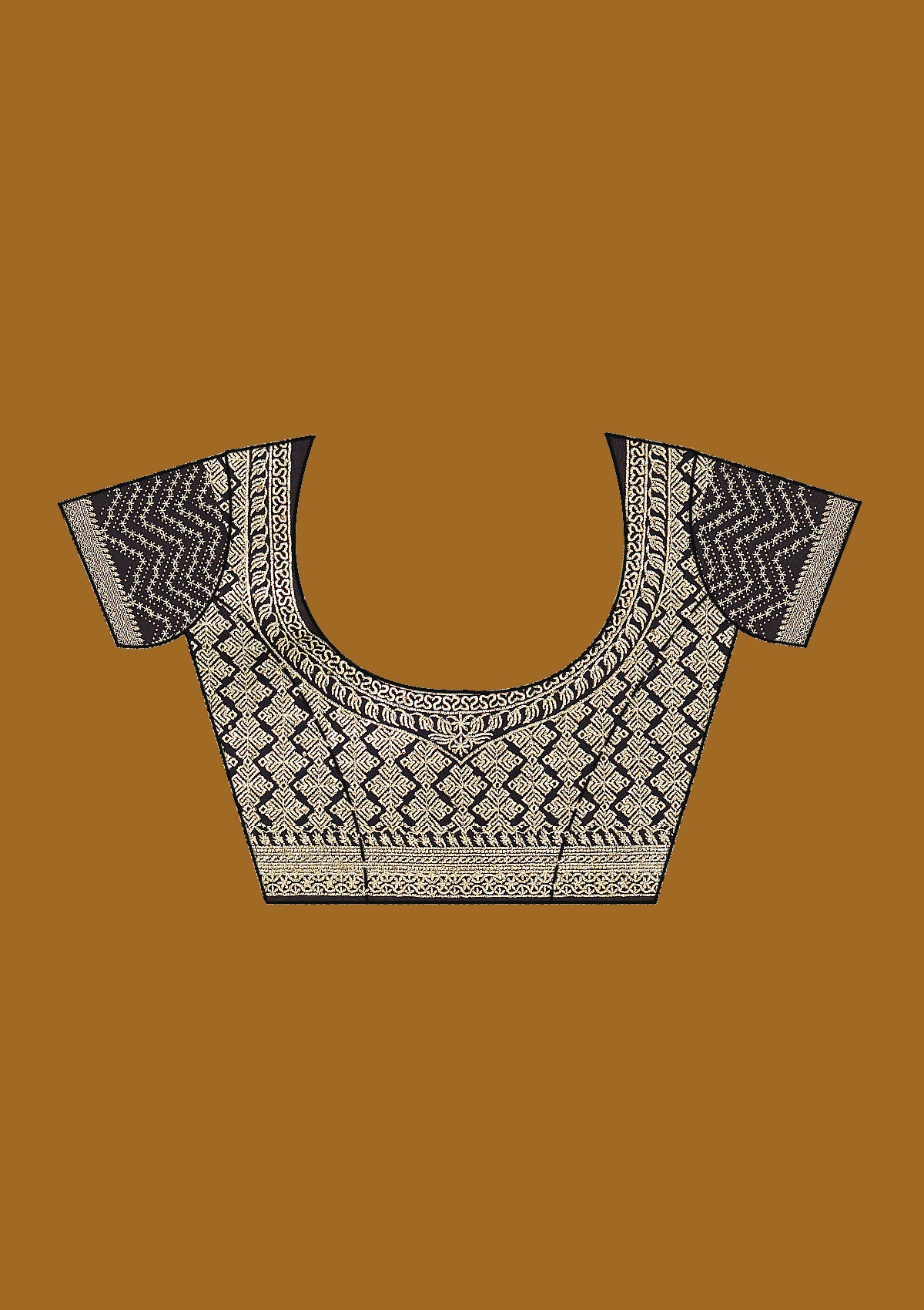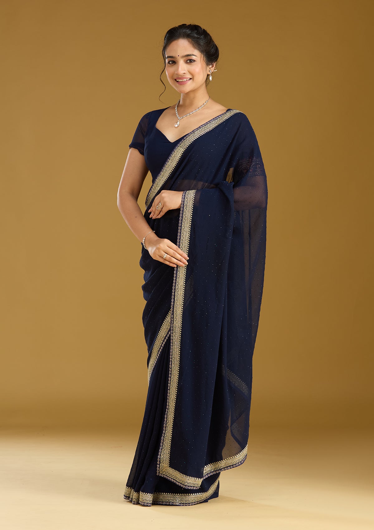 Navy Blue Saree in Georgette fabric. The Saree is elevated with Zariwork (Silver) embroidery. It comes with an Unstitched blouse. Comes with the Koskii promise of premium quality.