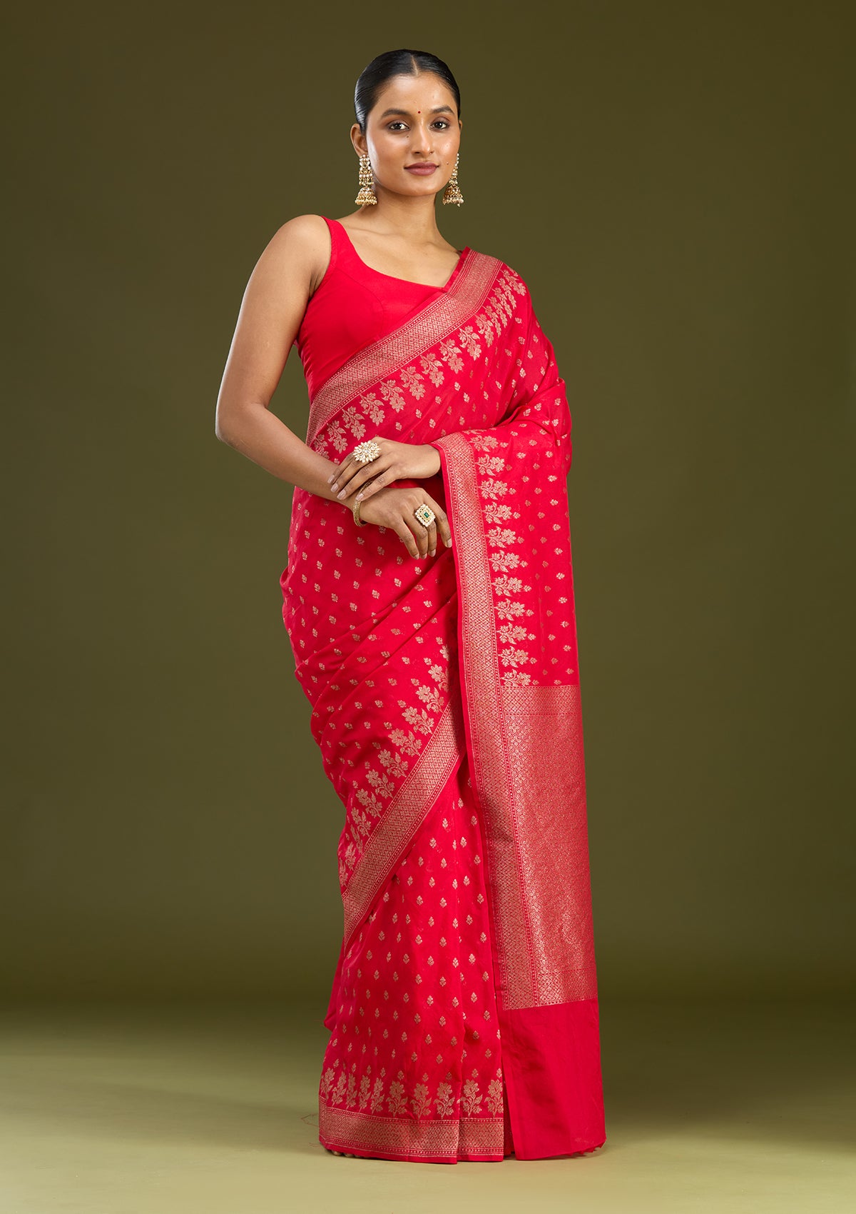 Magenta Pink Silk_Saree in Silk fabric. The Silk_Saree is elevated with Zariwork (Gold) embroidery. It comes with an Unstitched blouse. Comes with the Koskii promise of premium quality.