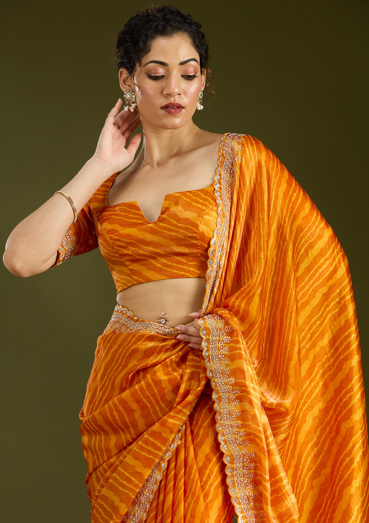 Mustard Saree in Organza fabric. The Saree is elevated with Zariwork (Silver) embroidery. It comes with an Unstitched blouse. Comes with the Koskii promise of premium quality.