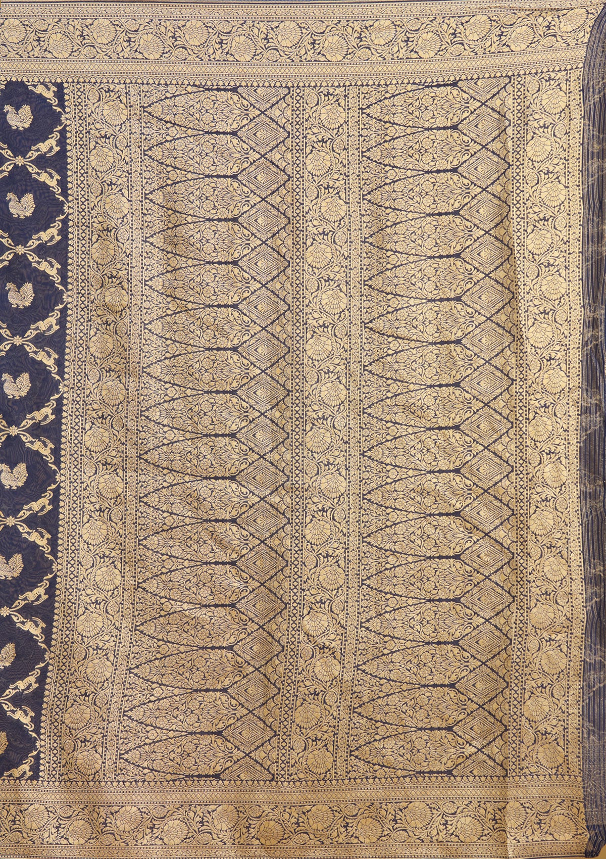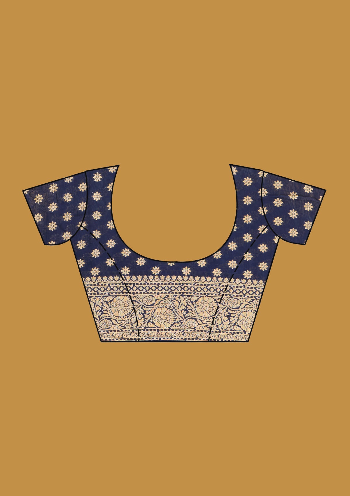Navy Blue Silk_Saree in Satin fabric. The Silk_Saree is elevated with Zariwork embroidery. It comes with an Unstitched blouse. Comes with the Koskii promise of premium quality.