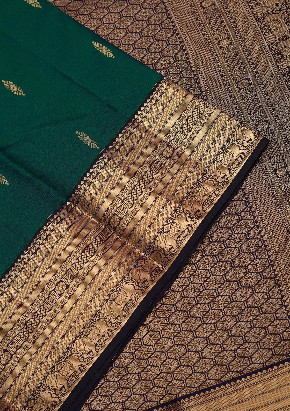 Peacock Green Zariwork (Gold) Silk Silk_Saree